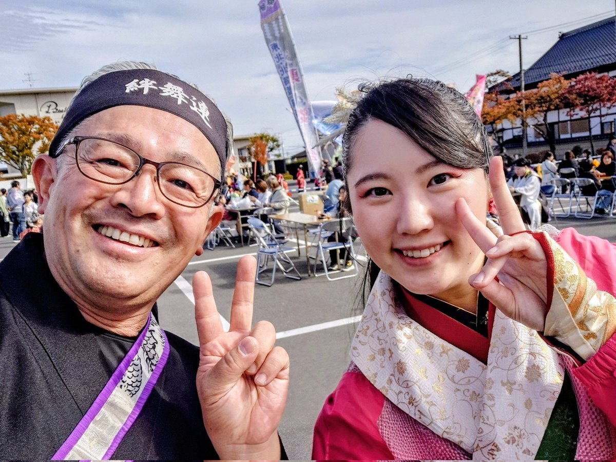 第2回YOSAKOI祭りin加美 月詠のお嬢さんと🤗 おじちゃん、ニヤけてませんよ、鼻の下も伸びてませんよ… たぶん🙄(笑) #第2回YOSAKOI祭りin加美 #月詠 pic.x.com/Ibhi9RE0Ps