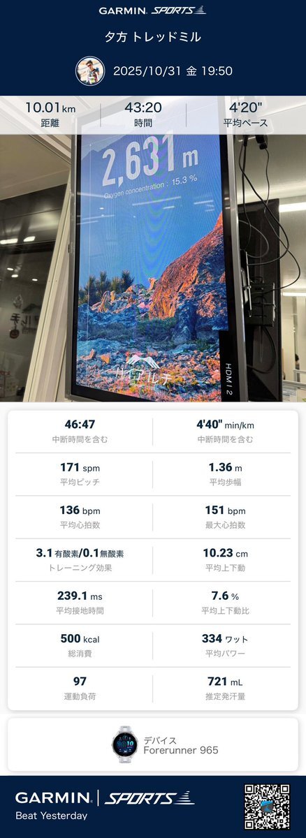 東京は大雨予報だったので、ハイアルチは今日にスライド。 長めの距離を走りたく最初は10km走。何となく頭がボーッとする😥後半から良くなってきた。 残りの時間は2.5km走だが、ペースはあまり変わらず。計12.5km 今月は281km。会食が多く少なめだが充実したかな。 #ハイアルチ #月間走行距離 pic.x.com/KoBBFkgRbu
