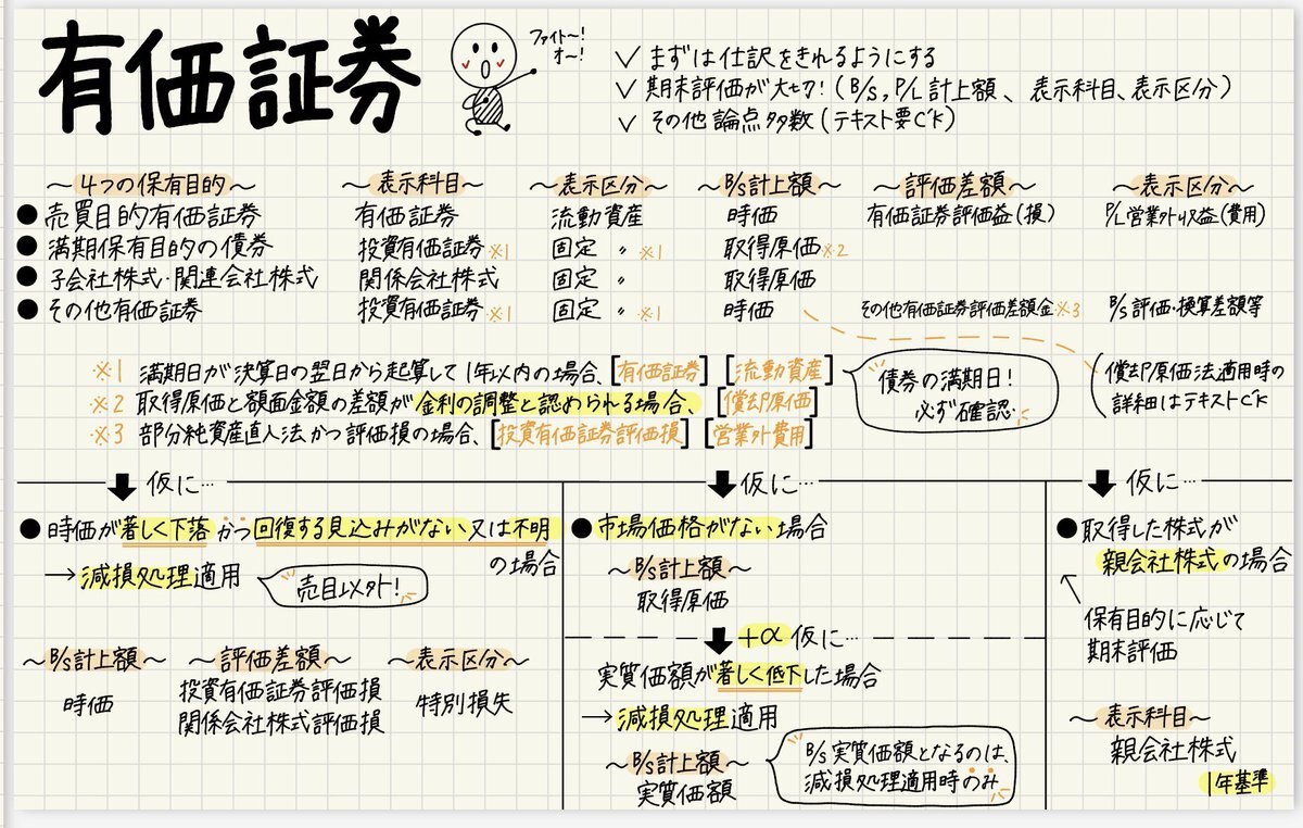 【有価証券】 「期末評価」の整理がポイント💡 ✔️B/S:取得原価or時価or償却原価? ✔️P/L:営業外?or特別? 細かい論点に目が行きがちですが、 まずは仕訳とセットで「期末評価」を押さえ、得点源にしていきましょう💪 #論点まとめ #初学レギュラー講義 #有価証券 pic.x.com/ayhDPR7Izm