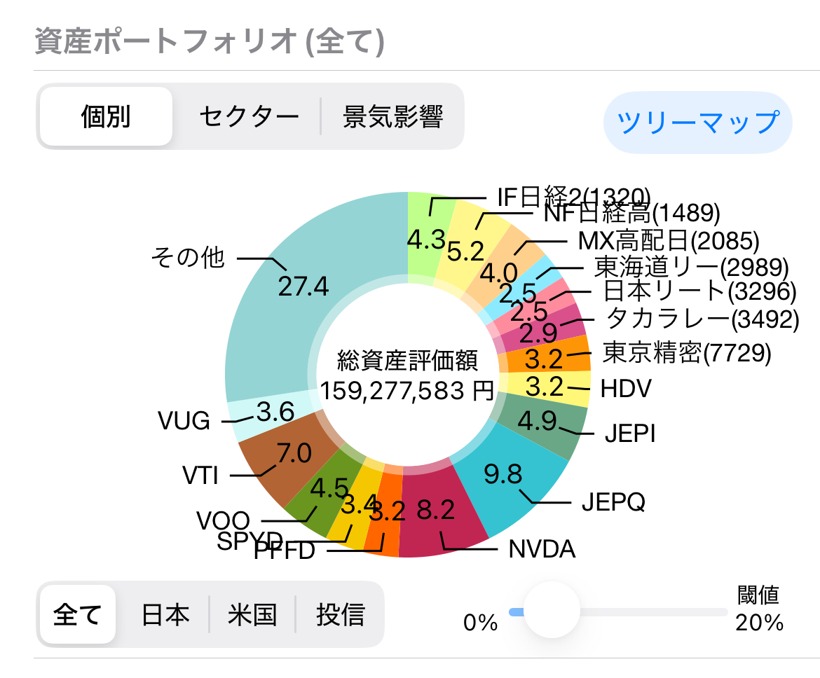 現状の有価証券のポートフォリオです。 このところの株高で確実に増えてますね。特に昨日はエヌビディア(NVDA)が上がりました。今後の調整局面に向けて、今はキャッシュポジションを少しずつ増やしています💰 #有価証券 #ポートフォリオ pic.x.com/1N82Dt2Dmn