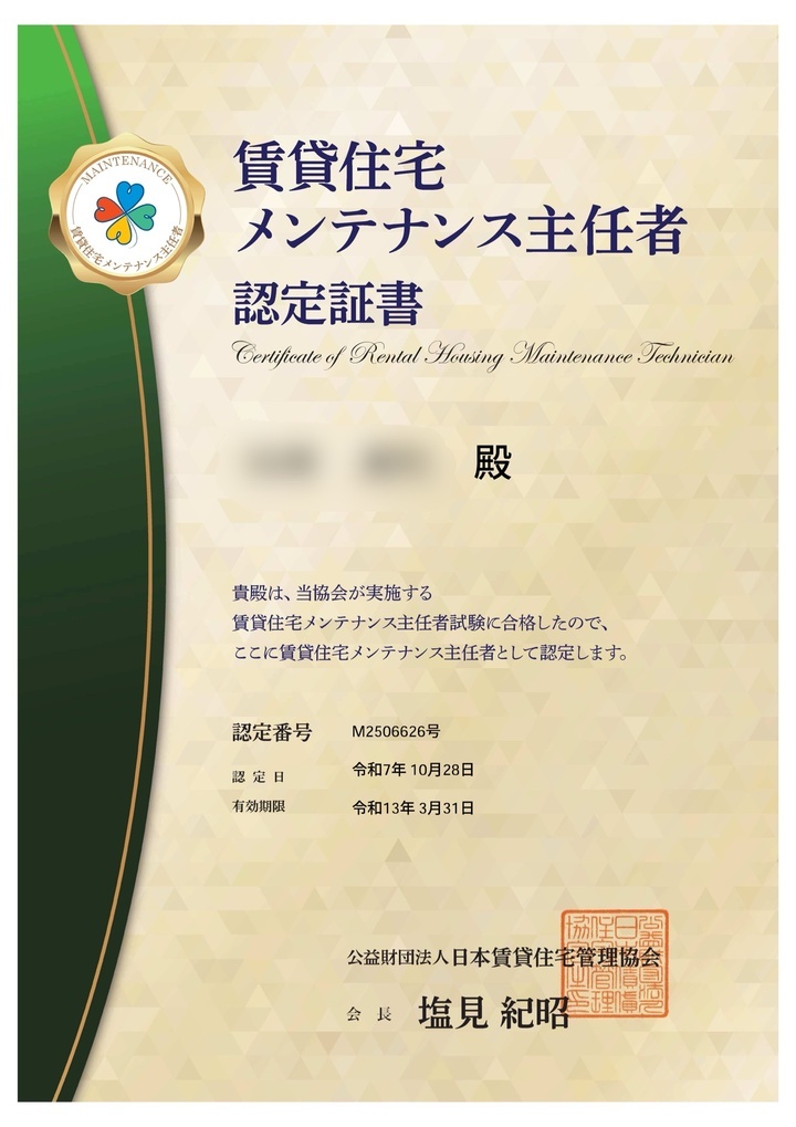 おはようございます☀ スタッフYです。 この度、「賃貸住宅メンテナンス主任者試験」に合格しました✨ これからもお客様の快適な暮らしをサポートできるよう努めてまいります。 #有限会社ハタノ不動産 #賃貸住宅メンテナンス主任者 pic.x.com/ZYJk64IZKL