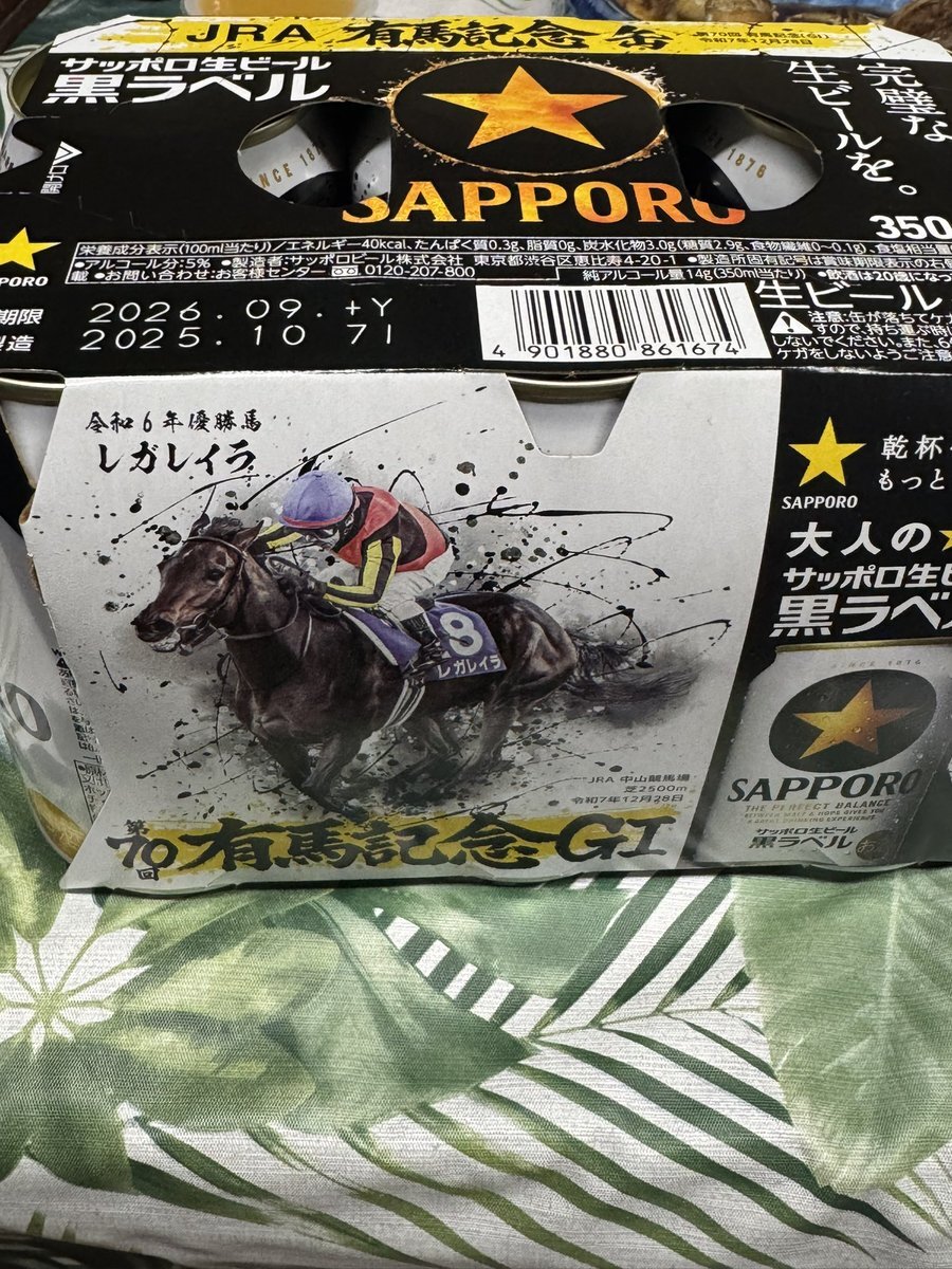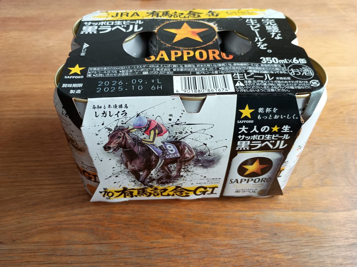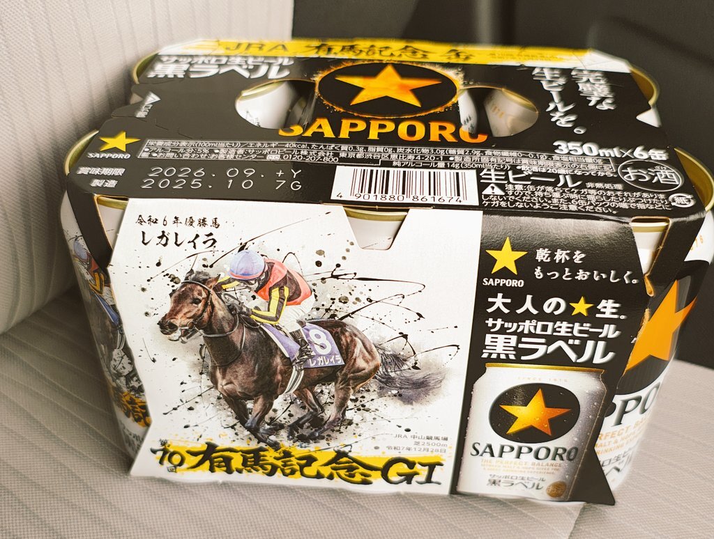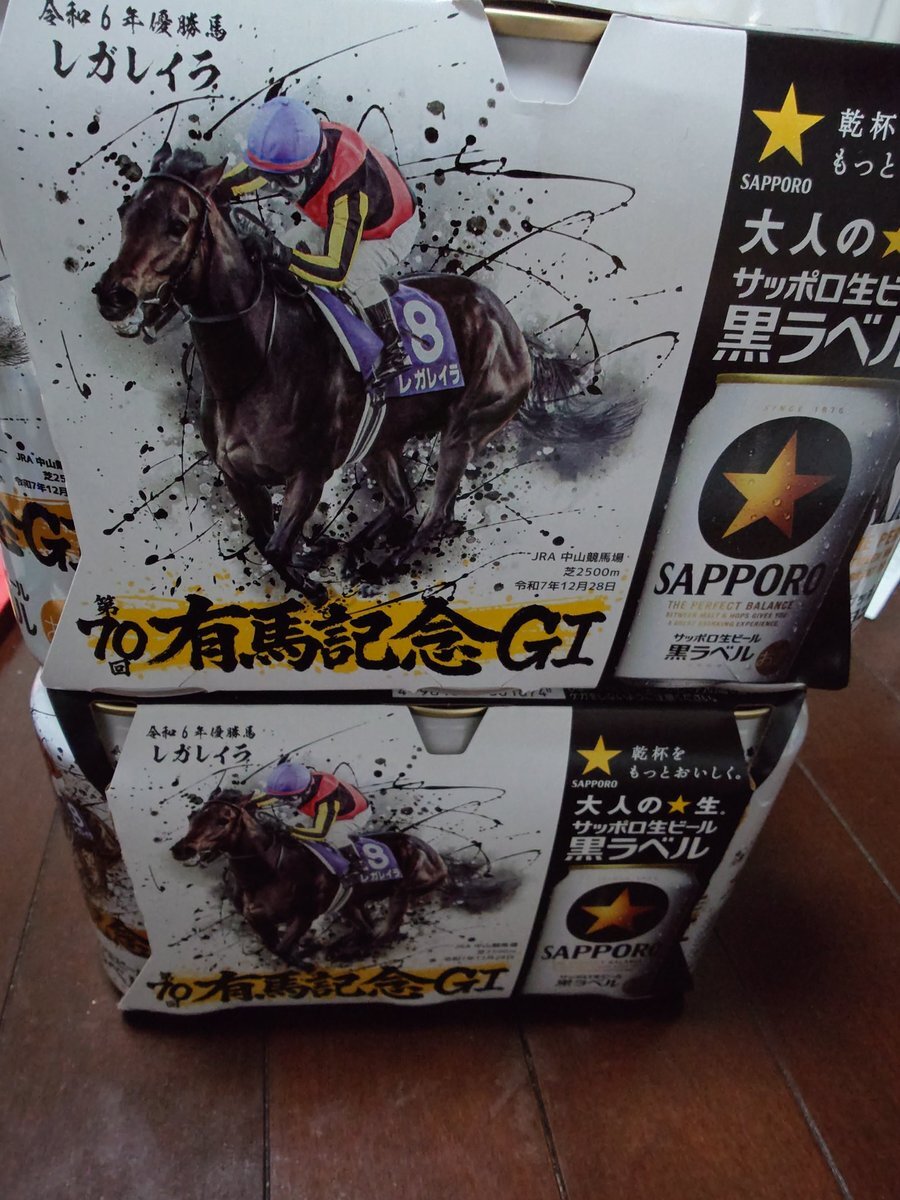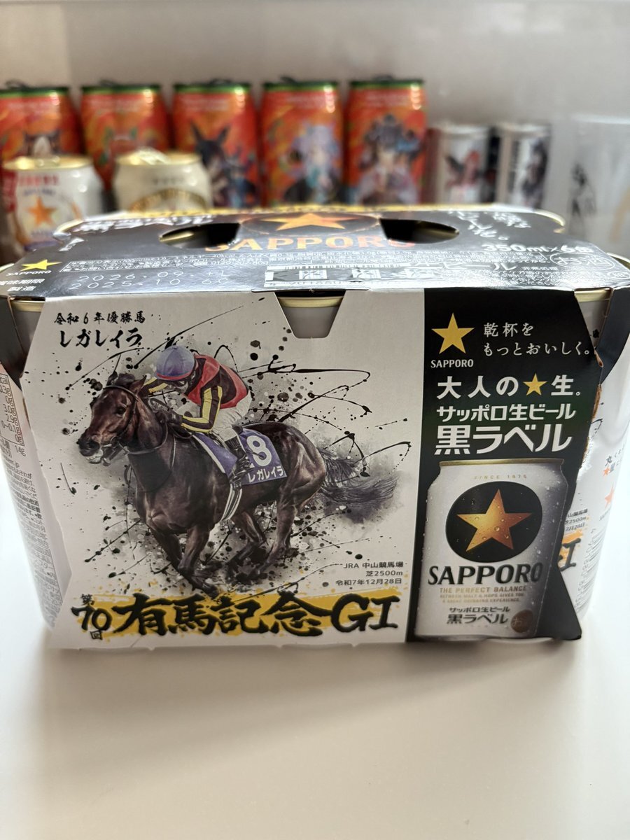 今年の有馬記念缶も楽しみにしてました!!まずは6缶パックをゲット済みです╰(*´︶`*)╯♡ #有馬記念缶 #サッポロ #黒ラベル x.com/sapporobeer/st…