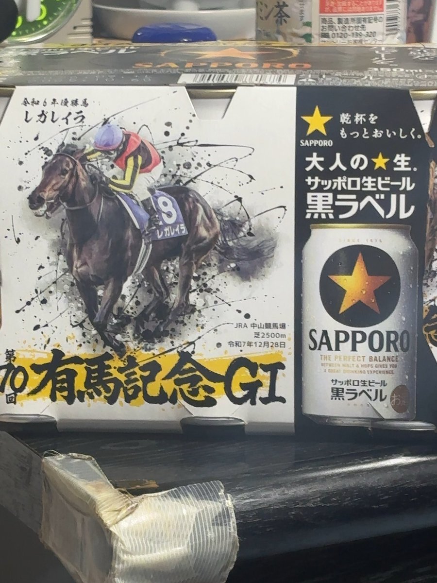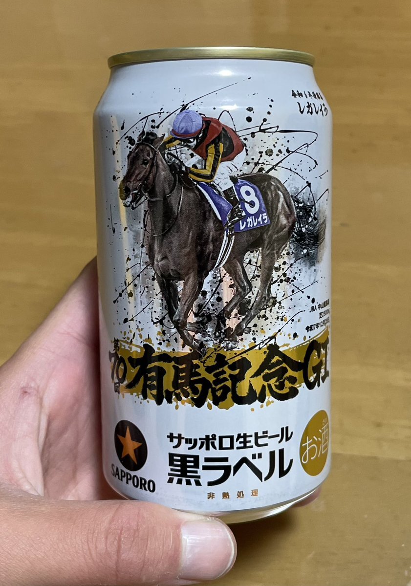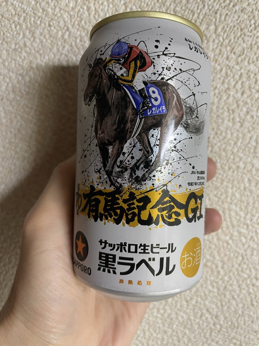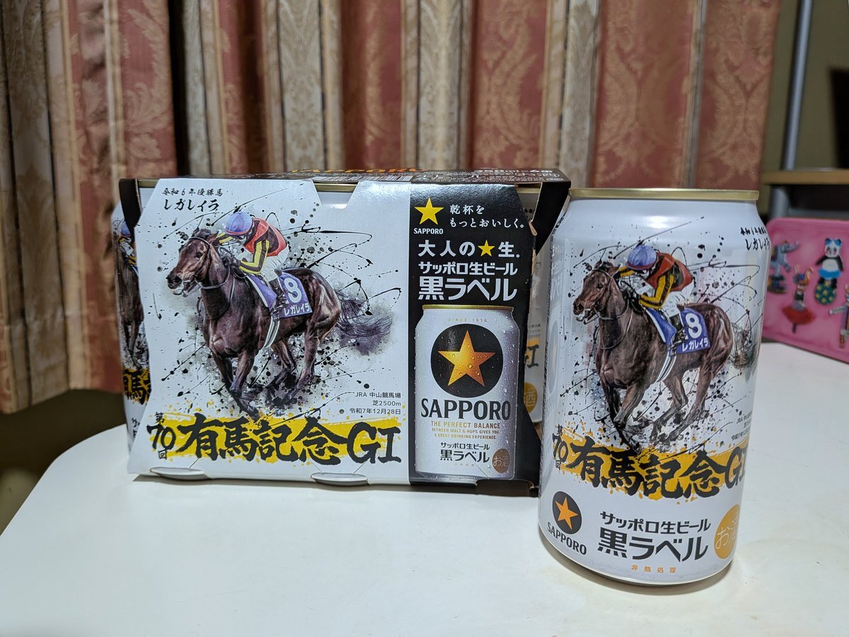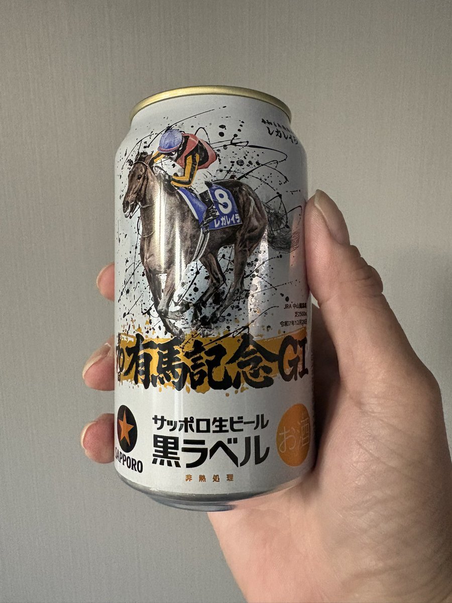 キターーー(≧∀≦) ホープフルSで脳を焼かれた2年後に有馬記念缶でお迎え出来るなんて✨ エリ女も有馬も頑張ってね! #有馬記念缶 #レガレイラ #サッポロ黒ラベル pic.x.com/fQ5jqUHcPo