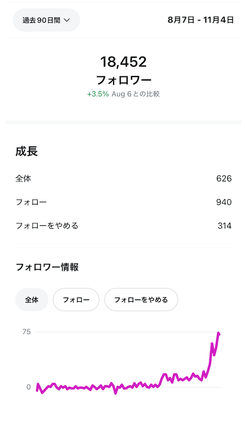 この5-6日間で500ぐらい増えたインスタ。その前 1年は+-繰り返し。2年に1回ぐらいこんなことが起こるけど、いつもと何が違うの?リールも食べ物もカフェもペット系も皆無で服の写真だけやのに見てくれてありがたいね エクセレンスシティ #朝の珈琲 #田代珈琲 #豆から珈琲飲んで50年 #今日のミール鉱山 pic.x.com/WuOGhzhhFh