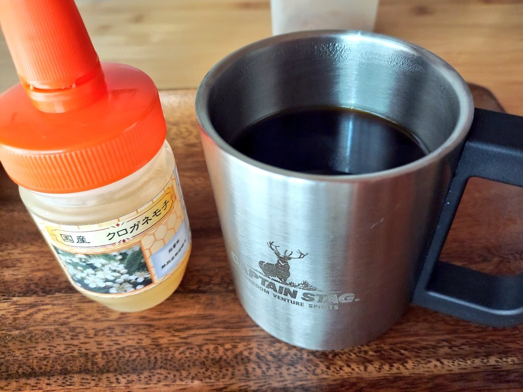 今朝の食後の珈琲は、 桜ヶ池の近くのみつばち牧場で買ってきたクロガネモチはちみつを入れたよ🍯 ハーバルな香りと甘味がちょっと寒い初冬の朝にうんまい🤗 #おうちカフェ #朝の珈琲 #はちみつ pic.x.com/JLEhjNft2m
