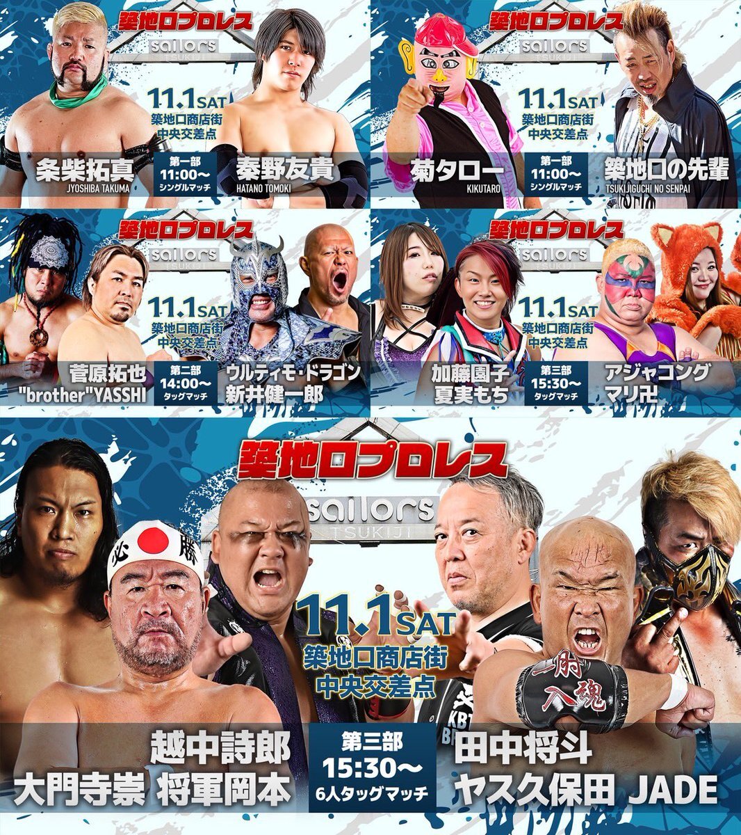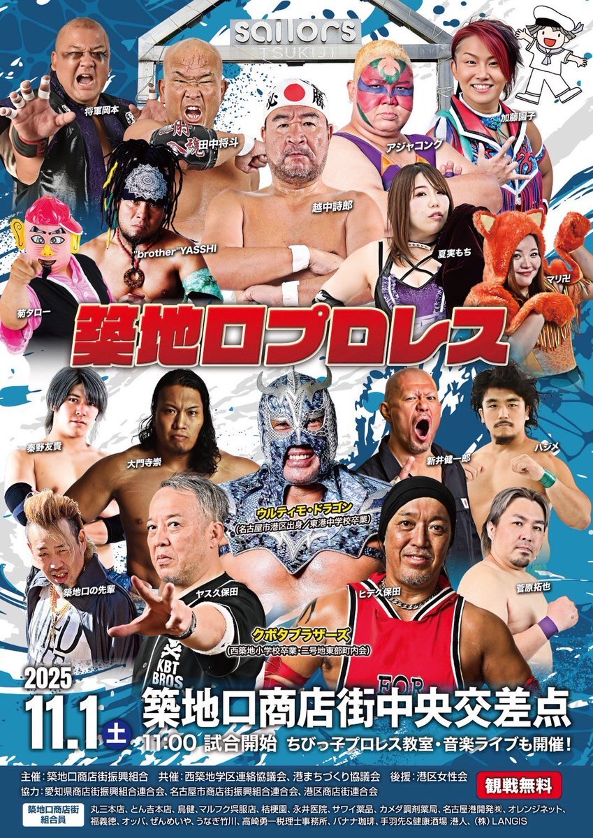 #朝の生存確認 おはようございます。 眠い💤🥱 11月スタート! 今日は #築地口プロレス 開催です! 今年も豪華参戦選手! 観戦無料! 武田はレバノン河村リングアナと本部席担当🎤 ウルティモ・ドラゴン選手、久保田ブラザーズの地元で1日盛り上がりましょう! 週末もよろしく! pic.x.com/TxaTLvdZMH