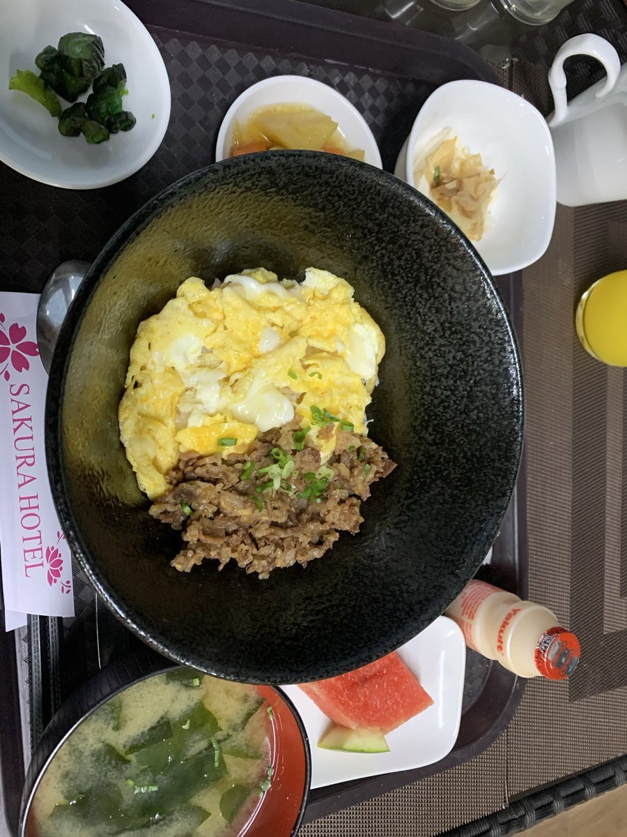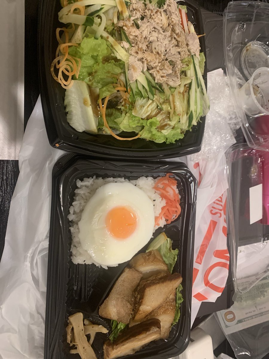 おはうしお🐰 #朝の生存確認 メシテロ 右 昨日の晩ご飯  行きつけだった日本食スーパーのお弁当&サラダ、おつとめ値引き品 左 今朝のホテルの朝色 牛そぼろ丼 今日もボチボチ頑張ろ〜💪 pic.x.com/9MoadZ1E7y