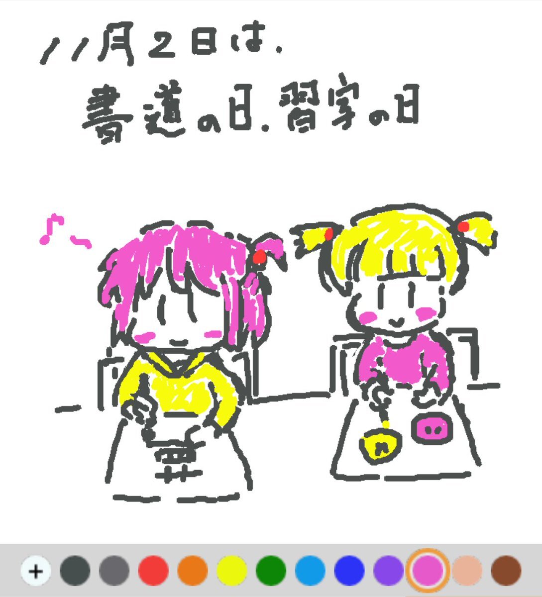 11月2日は、 書道の日・習字の日でした♪ 日付は、「いい(11)もじ(02)」と読む語呂合わせから♪ 多くの人に文字を書くことに親しみを持ってもらい、手書きで文字を書くことの大切さを伝えていきたいですね(#^.^#) #REALITYで描いてみた #REALITYイラスト部 #朝の10分お絵描き #今日は何の日 pic.x.com/sUxHaHVj0i