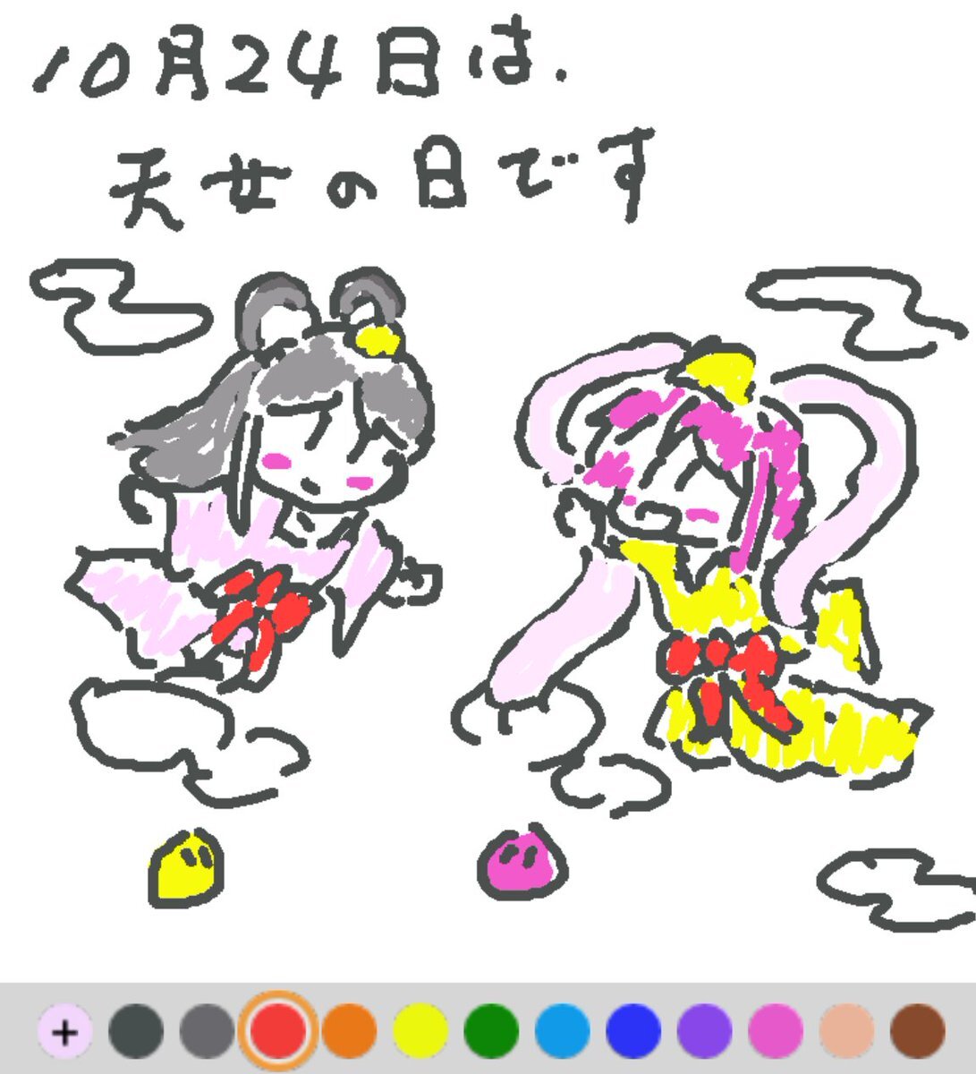 10月24日は、 天女の日でした♪ 神様に仕え、天界に住むと言われている天女様♪ 華麗に空を舞いますが、羽衣を奪われると空を飛べず天界に帰れなくなっちゃうんです(#^.^#) #REALITYで描いてみた #REALITYイラスト部 #朝の10分お絵描き #今日は何の日 pic.x.com/lQ1XiEAAGm