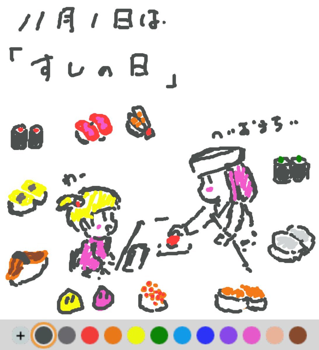 11月1日は、 すしの日でした♪ 日付は、11月が新米の季節であり、ネタになる海の幸に脂がのって美味しい時期であることから♪ #REALITYで描いてみた #REALITYイラスト部 #朝の10分お絵描き #今日は何の日 pic.x.com/uFzQZIWgXW
