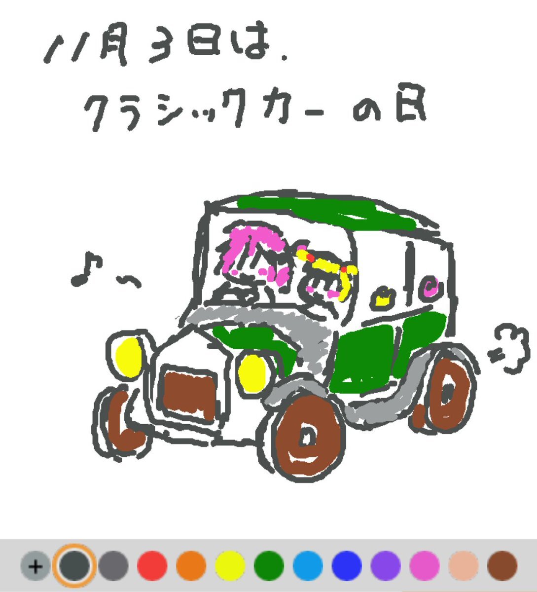 11月3日は、 クラシックカーの日でした♪ 1769年にフランスで蒸気で動く自動車が発明されて以来、国産では1916年に初めて乗用自動車が誕生したそうです(#^.^#) #REALITYイラスト部 #REALITYで描いてみた #朝の10分お絵描き #今日は何の日 pic.x.com/YYoAxCrflW