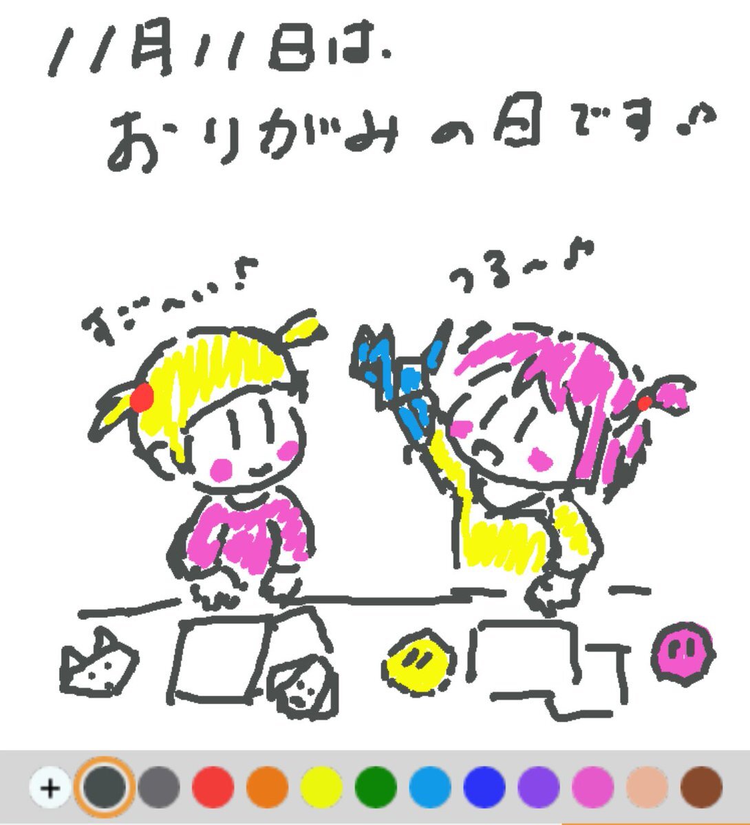11月11日は、 おりがみの日でした♪ 日付は、今日が世界平和記念日であること、1を4つ組み合わせると折り紙の正方形になることから♪ 折り紙の楽しさ、教育的な効果などを多くの人に知ってもらうことが目的です(#^.^#) #REALITYで描いてみた #REALITYイラスト部 #朝の10分お絵描き #今日は何の日 pic.x.com/efV0suMMlP