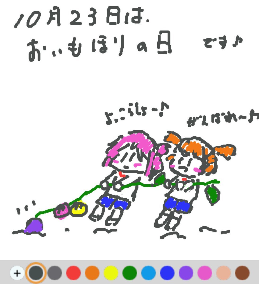 10月23日は、 おいもほりの日でした♪ 遠足などで必ずと言っていいほど行ったことがある「おいもほり」。 日付は、10月23日は二十四節気の霜降の頃であり、おいもほりのピークを迎えることから、だそうです(#^.^#) #REALITYで描いてみた #REALITYイラスト部 #朝の10分お絵描き #今日は何の日 pic.x.com/CmJbaSR1V4