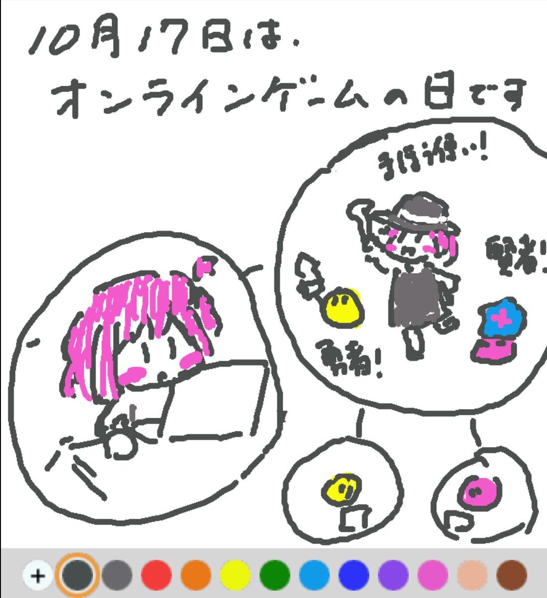 10月17日は、 オンラインゲームの日でした♪ 日付は、1,997年のこの日、MMORPG「ウルティマオンライン」が発売されたことから♪ 商用MMORPGの最初の成功例として、今日のゲームにも多大な影響を与えています(#^.^#) #REALITYで描いてみた #REALITYイラスト部 #朝の10分お絵描き #今日は何の日 pic.x.com/rEBhBIBgIf