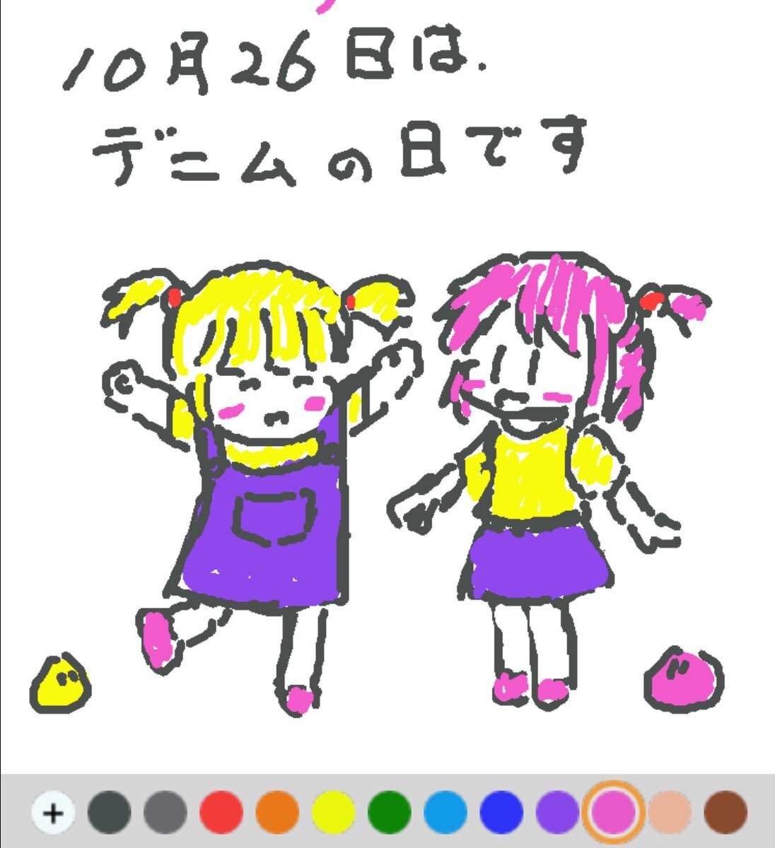 10月26日は、 デニムの日でした♪ 日付は、「デ(ten=10)ニ(2)ム(6)」と読む語呂合わせから♪ 語源はフランス語の「セルジュ・ドゥ・ニーム(ニームの綾織り)」で、「ニーム産」の部分だけ残す形で「デニム」に(#^.^#) #REALITYで描いてみた #REALITYイラスト部 #朝の10分お絵描き #今日は何の日 pic.x.com/dZ29L21518