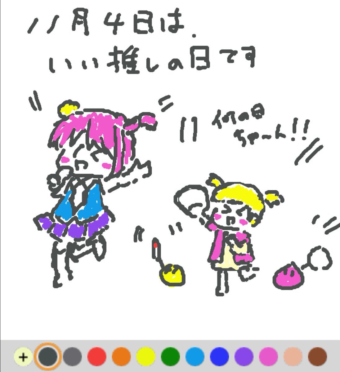 11月4日は、 いい推しの日でした♪ 日付は、「いい(11)推し(04)」と読む語呂合わせから♪ 「推」という字が使われるように、「他の人に推薦できる」「他の人に知ってもらいたい」という想いが込められています(#^.^#) #REALITYイラスト部 #REALITYで描いてみた #朝の10分お絵描き #今日は何の日 pic.x.com/n0ARQHYc8m