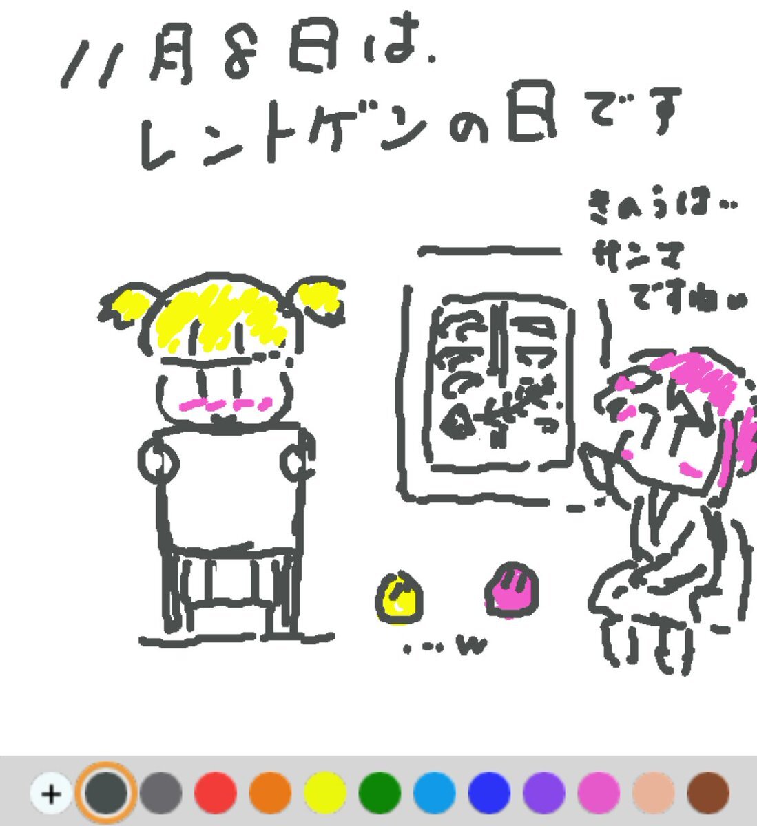 11月8日は、 レントゲンの日でした♪ 日付は、1895年のこの日、ドイツの物理学者レントゲンがX線を発見したことから♪ X線は、体の部位や状態によって通り抜け方が違うため、体内の様子がわかるんですね(#^.^#) #REALITYで描いてみた #REALITYイラスト部 #朝の10分お絵描き #今日は何の日 pic.x.com/ut9LN9cFqt