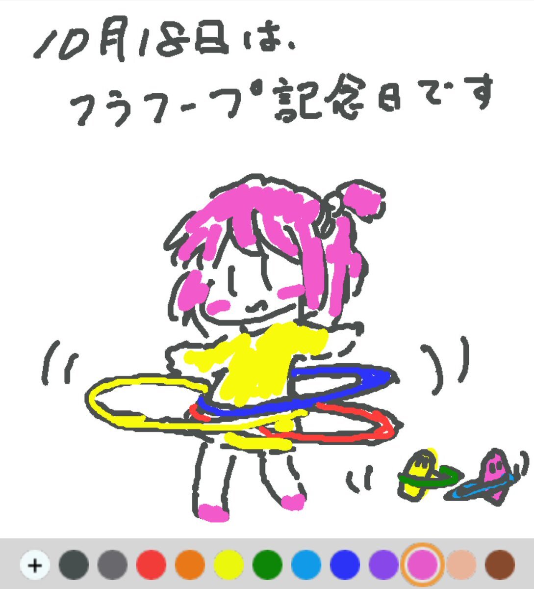 10月18日は、 フラフープ記念日でした♪ 日付は、1958年のこの日、フラフープが東京のデパートで初めて発売されたことから♪ 美容と健康によいと宣伝されたこともあり、子供ばかりでなく大人の間でも大ブームに(#^.^#) #REALITYで描いてみた #REALITYイラスト部 #朝の10分お絵描き #今日は何の日 pic.x.com/nkYT7IvIPF