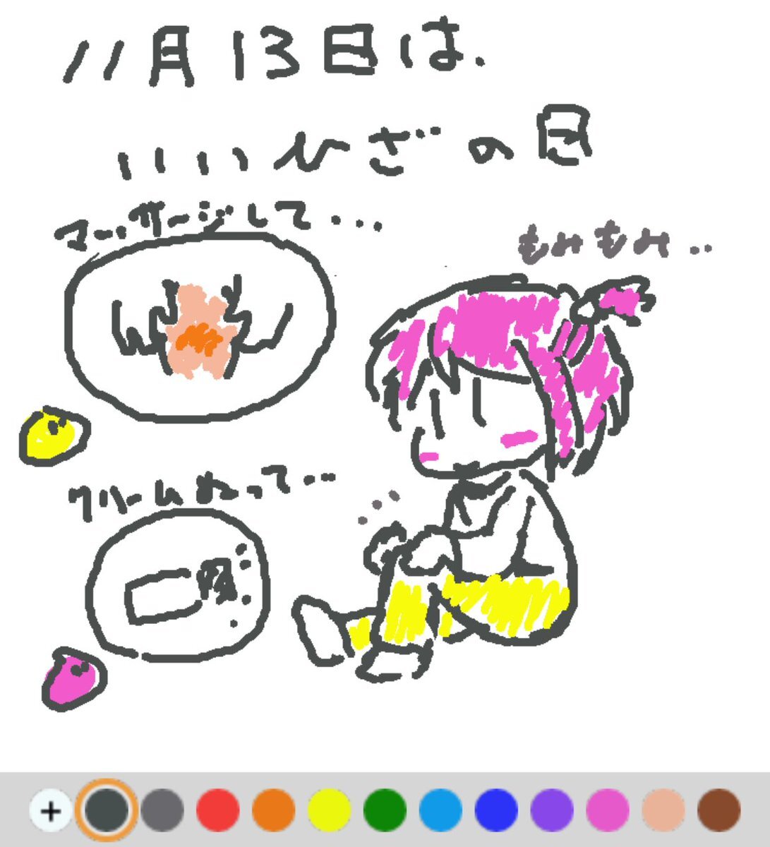 11月13日は、 いいひざの日でした♪ 日付は、「いい(11)ひざ(13)」と読む語呂合わせから♪ 寒さが増してひざが痛み出す時期に、ひざ関節痛の治療や予防を広く呼びかけるための日です(#^.^#) #REALITYで描いてみた #REALITYイラスト部 #朝の10分お絵描き #今日は何の日 pic.x.com/4X7QG3Mhqv