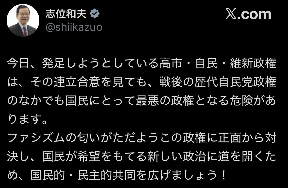 志位和夫氏「高市は最悪の政権!!ファシズム!」 『いや、お前ただ単に気に入らないだろ』 『最悪なのは共産党』 と思う方 いいね👍お願いします