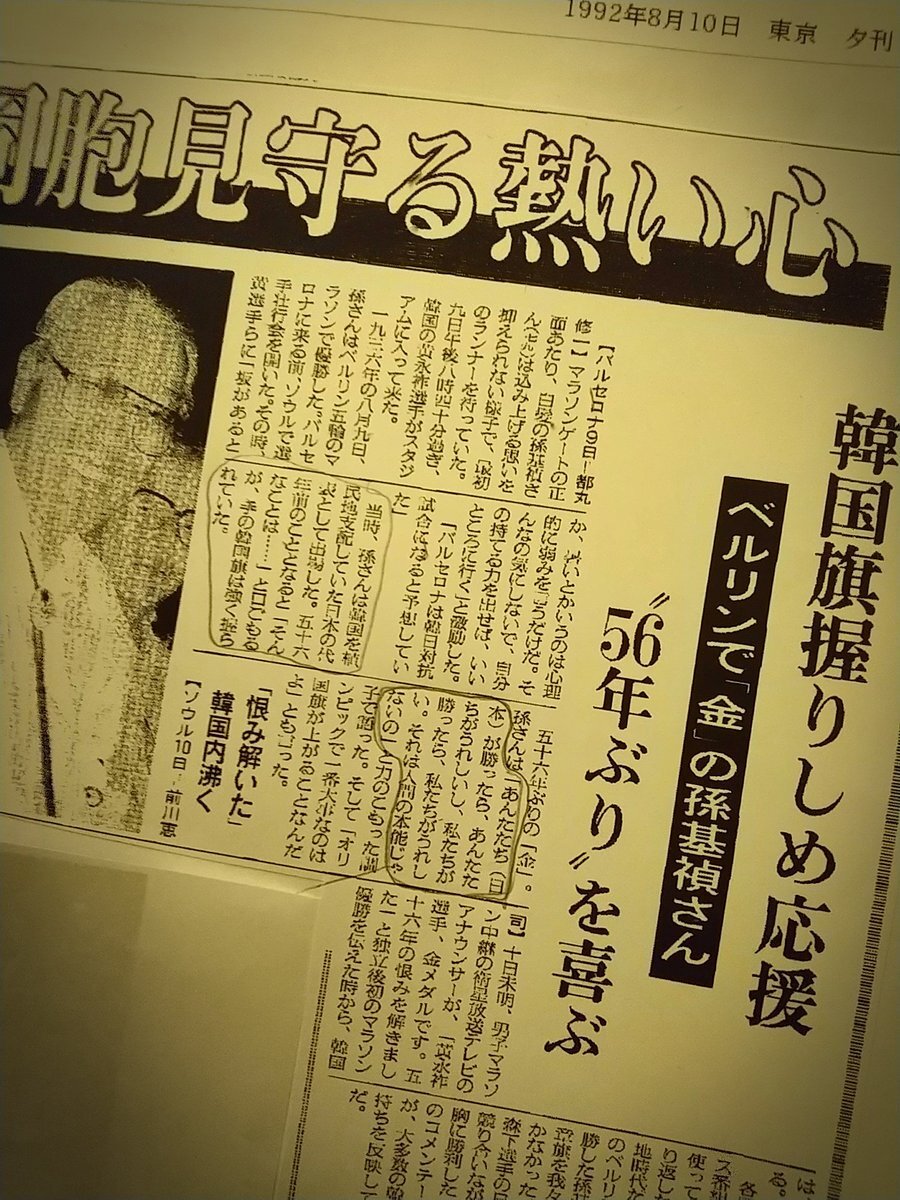 → 孫基禎は晩年 「朝鮮民族の韓国人」としてのアイデンティティを深めながら 韓国と日本の、スポーツを通しての親善関係を深めるための 様々な活動を行いました。 #孫基禎 #がんばれゆうすけ #ベルリンオリンピック #韓国 #日本 #朝鮮民族 #民族 #いだてん pic.x.com/qQR46J6OSd