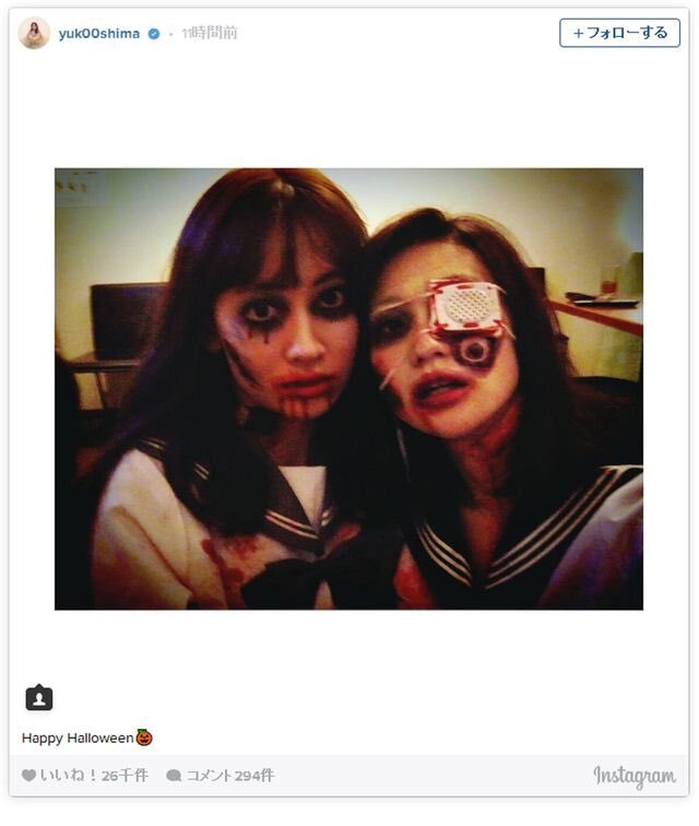 有名人眼帯図鑑No.5 大島優子 元AKBで総選挙で1位を取ったこともある大島優子も眼帯をしていた。これはハロウィンのコスプレだからアドレノクロム関係ないとおもいきや、眼帯をするのはアザを隠すため以外に片目隠しという悪魔に忠誠を表すサインでもある。こじはるの目の周りは真っ黒で意味深。 #AKB