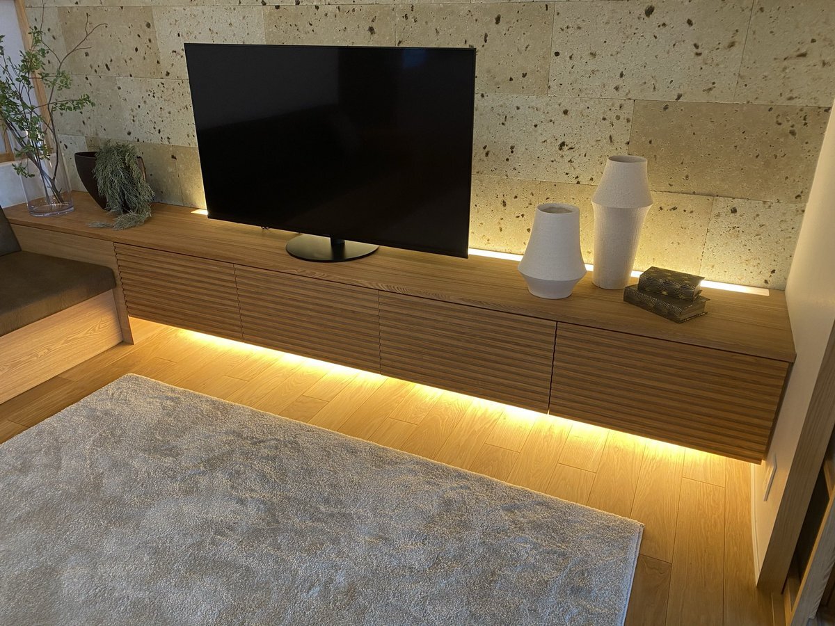 木の温もりを感じながら過ごす時間。 シンプルで上質なデザインは長く愛用できます。 #木のある暮らし #家具職人 #テレビボード #シンプルライフ