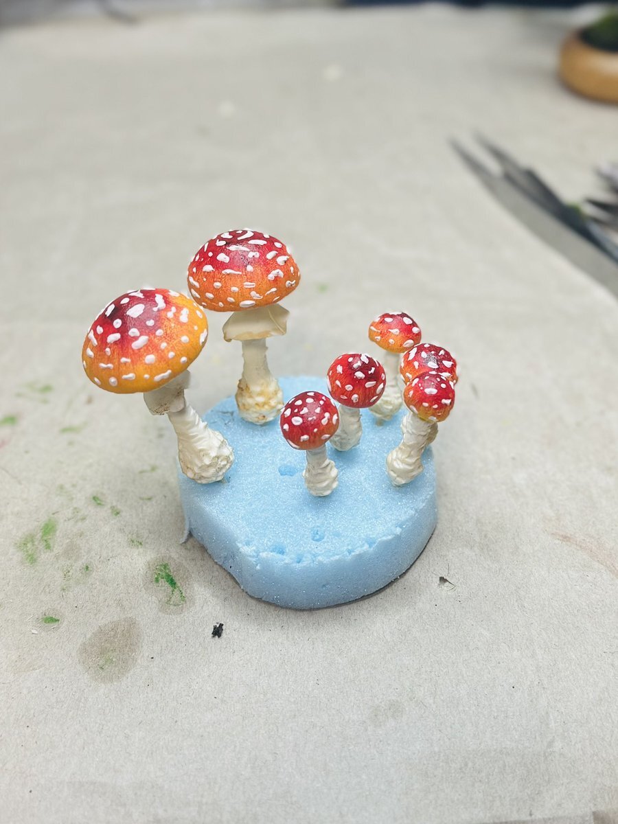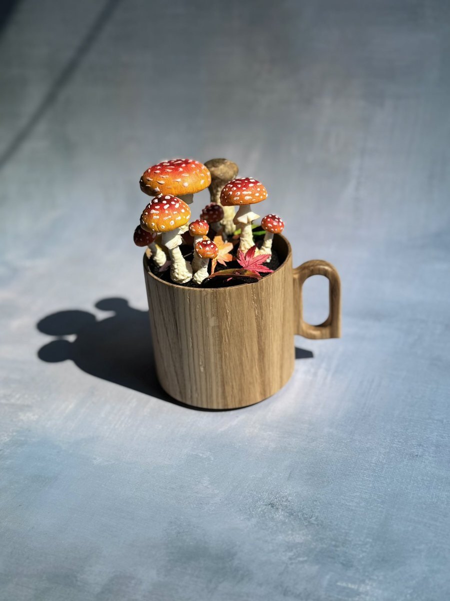 Handmade mushrooms🍄 小田原漆器・薗部産業さんの Mugcrann(マグクラン) に、ベニテングダケ🍄作りました。 ひとつだけ違うキノコ🍄‍🟫がいます。笑 📍出店情報 11/15-16 デザインフェスタ62 東京ビッグサイト #handmade #キノコ #ベニテング #樹脂粘土 #木のある暮らし #デザフェス pic.x.com/kU3z6jwTmM