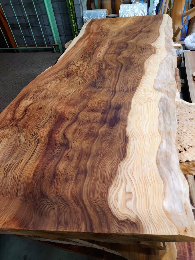 おはようございます #徳田銘木 です🌳 写真はトチの一枚板 キラキラとした杢がとても綺麗です✨ #企業公式秋のフォロー祭り #木工 #木材 #木のある暮らし #インテリア #woodworking pic.x.com/8mOxGiAlHn
