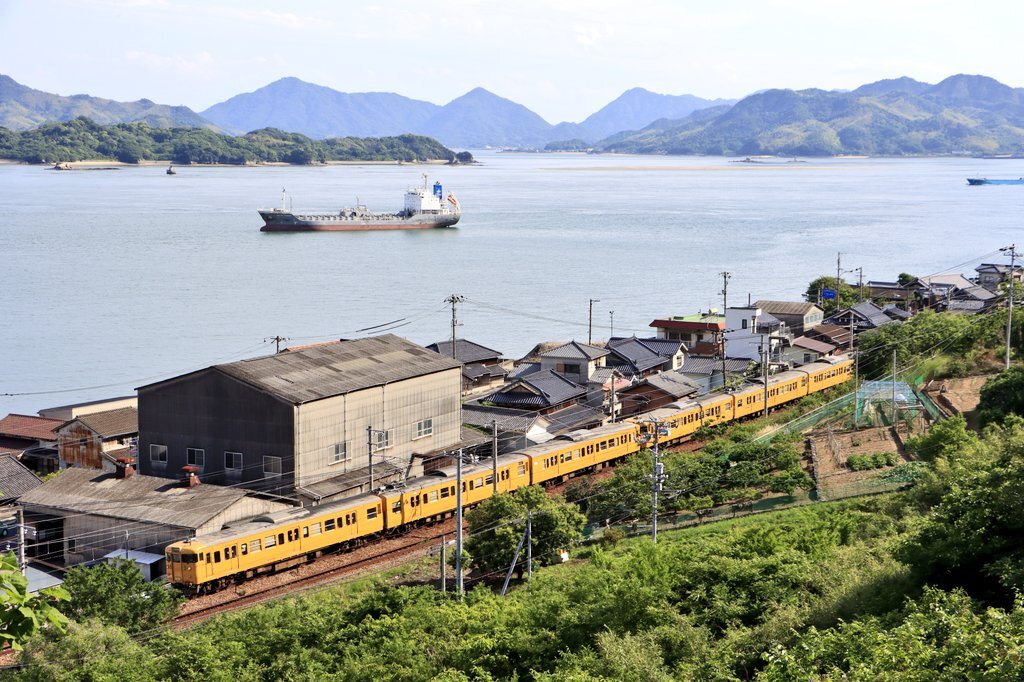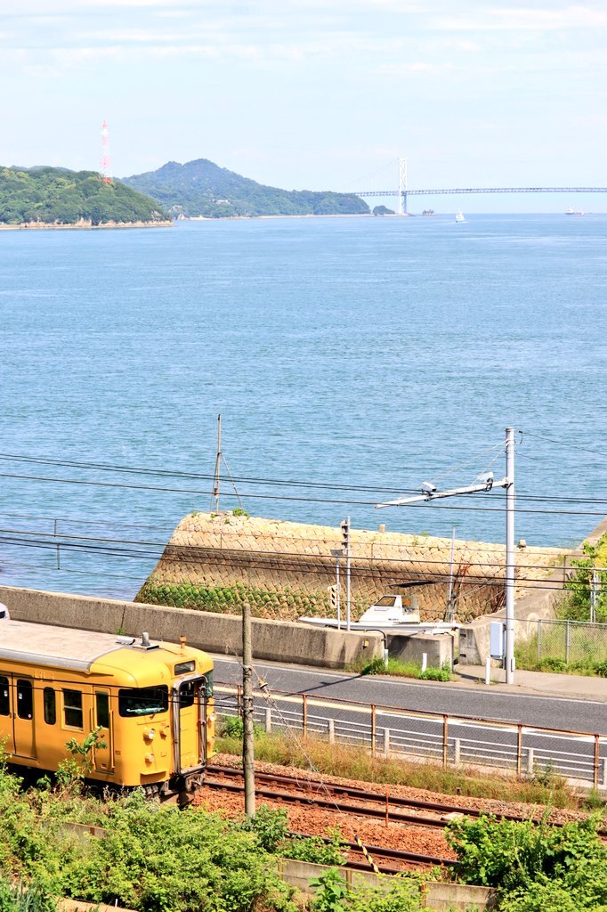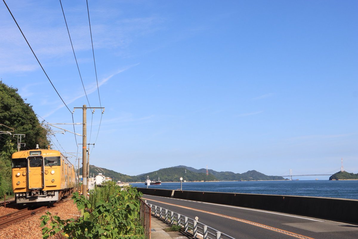 某公共放送で #ユーミン#瞳を閉じて に関する番組を視ていたら、頭に浮かんできました(笑)。 海が大きく近くて大好きな場所です😌 #三原 #木原 #115系 #黄色い電車 pic.x.com/MM9dGUyf2g