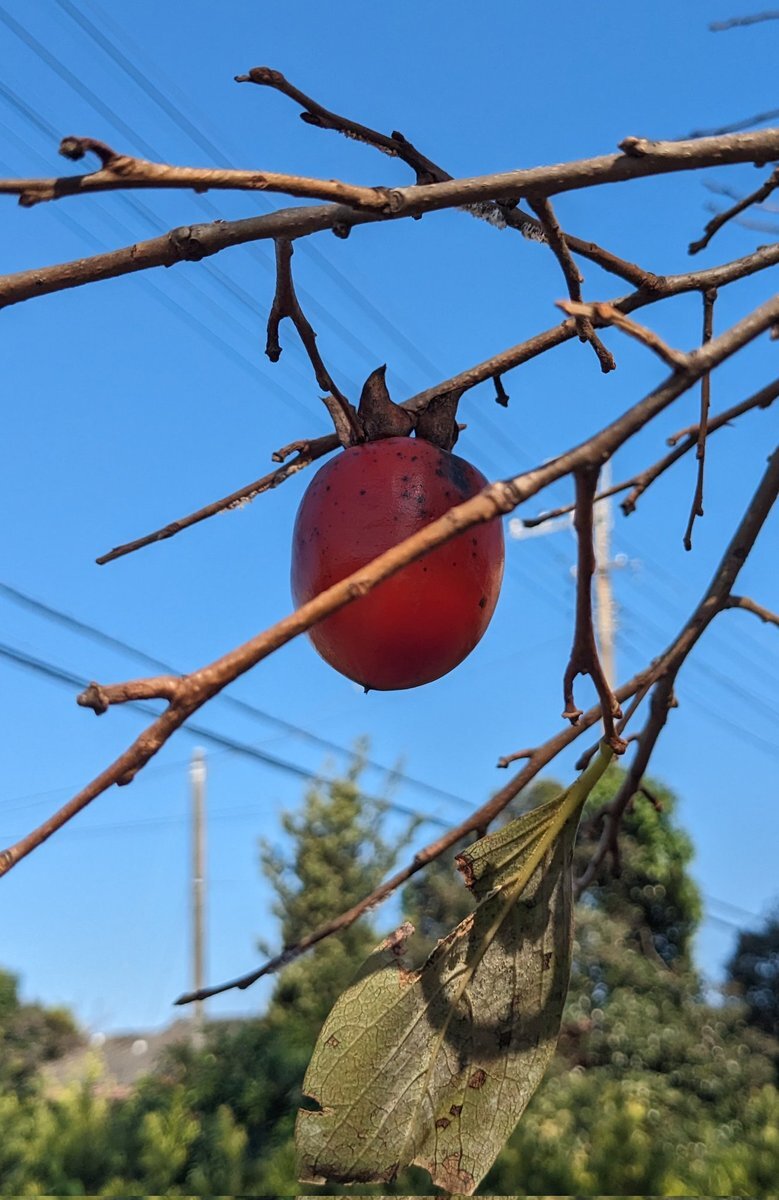 かきひとつ のこりしえだに わらべらの こゑすけいくる そらのたかみよ 柿ひとつ残りし枝に童らの声透けいくる空の高みよ #和歌 #やまとことば #短歌 #木守柿 pic.x.com/YahGkZSFYJ