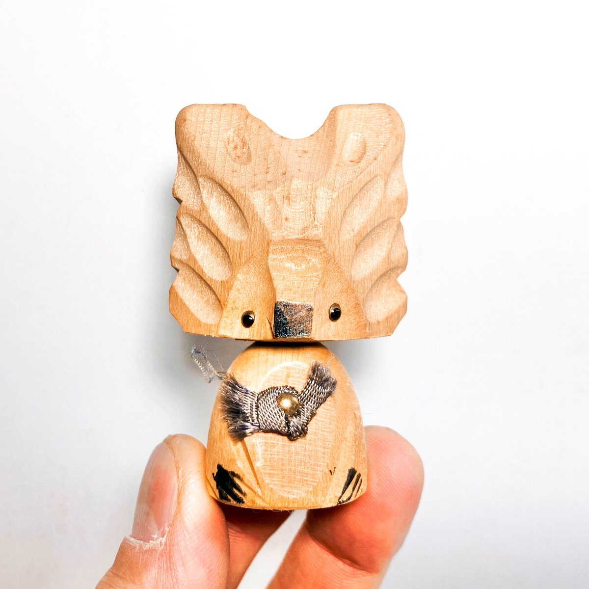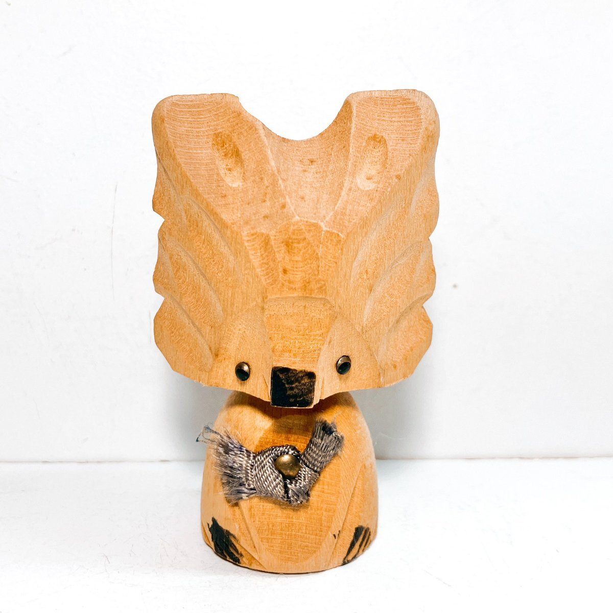 ● #奇声の入荷 ● 鮭を加えた木彫り熊に比べ圧倒的に彫りが少ないのにも関わらず、ここまでキュンとさせる不思議な木彫り熊。ガラス目にリボンの蝶ネクタイでその可愛さは完成を迎えます。同じ北の精霊として知られる、セワポロロに後ろ姿がちょっと似ているのも個人的にはポイント高し。#木彫りの熊 pic.x.com/w45tiJo3ea