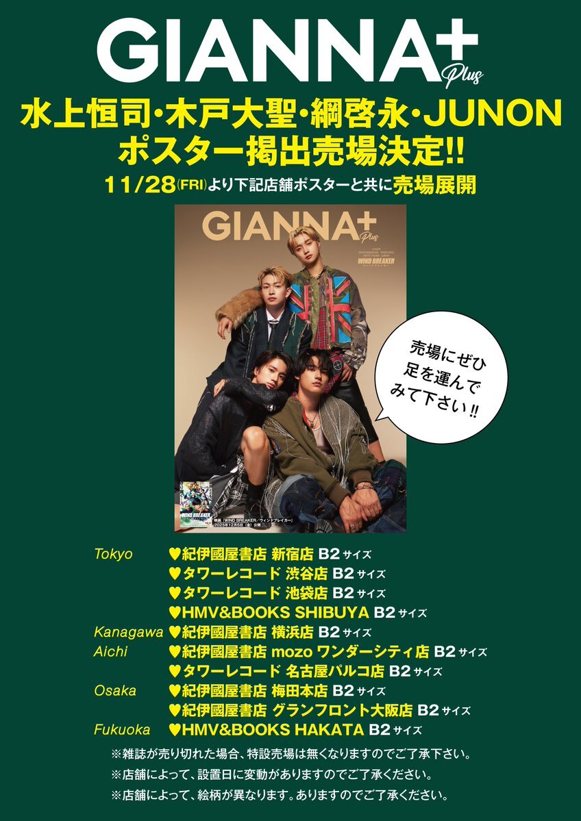 【本日発売】 2025年11月28日発売『GIANNA Plus』 #7 映画『WIND BREAKER』キャスト特別表紙版 1980円 水上恒司&木戸大聖&綱啓永&JUNON 豪華両面表紙&28Pファッショングラビア大特集 特別付録:撮り下ろしA4両面ピンナップ付 ※限定店舗にてポスター掲出売場展開実施 windbreakerg.blogspot.com/2025/10/202511…