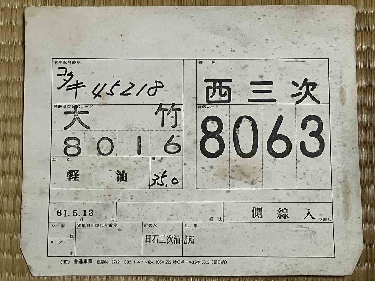 昭和61年の芸備線貨物の車票。使用年が記入された車票は良い情報源になりますね。 #タキ45000 #貨車車票 #木曜日の車票 pic.x.com/Y8mMBgCUnf