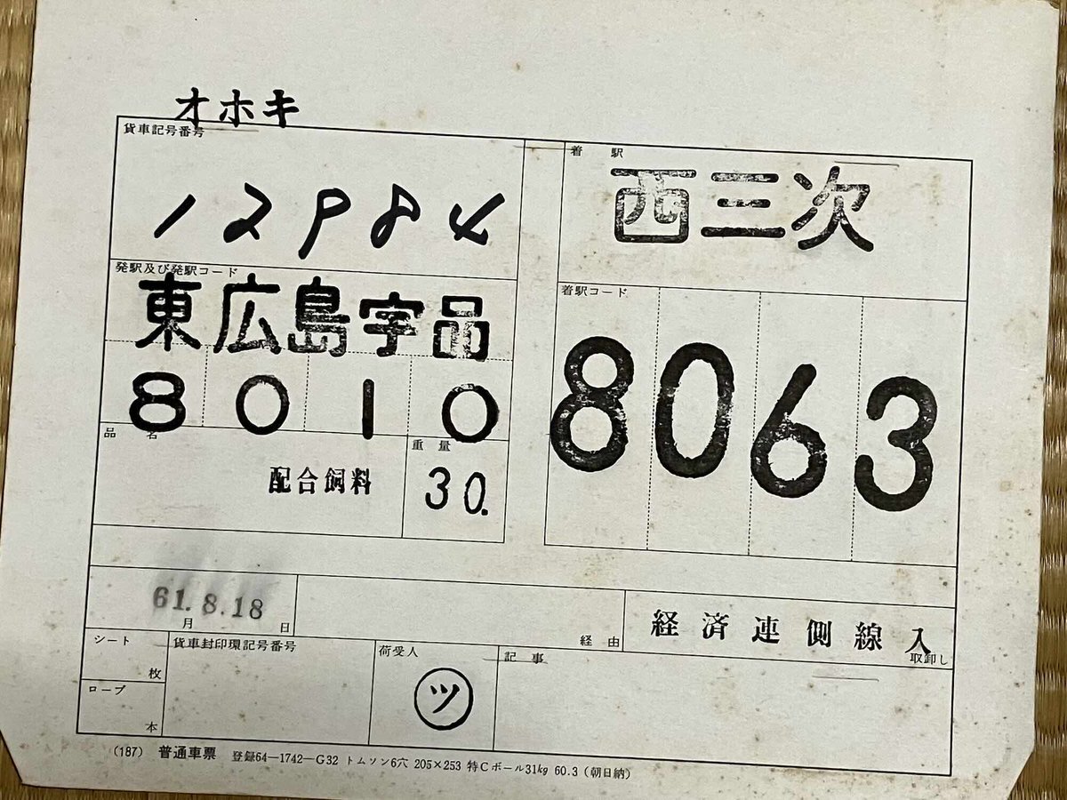 こちらは宇品発のホキ2200形による西三次への飼料輸送。昭和61年ですから、宇品駅廃止後の「宇品四者協定線」時代の最末期ですね。 #木曜日の車票 pic.x.com/pUNkUlwOuN