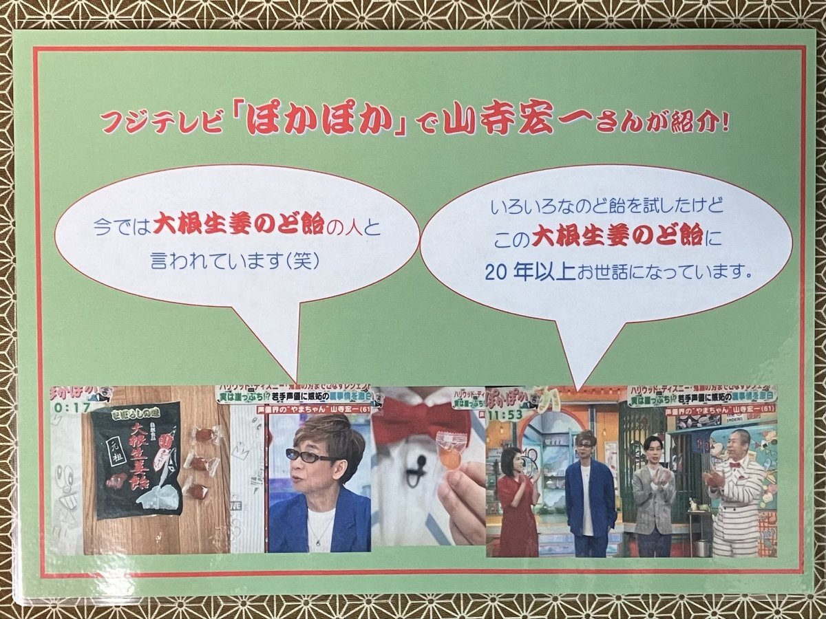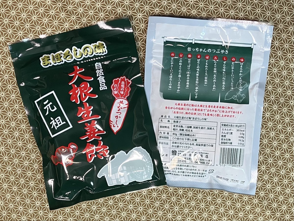 ◆ お仕事関連ポスト さて、今日から「冬」です これからどんどん寒くなります 喉をいたわるために…… 大根生姜のど飴まぼろしの味 80g入り 490円 個包装なので分けあうのにも便利です #木村海藻店 にあります #茅場町 pic.x.com/nk2xLF2cdC