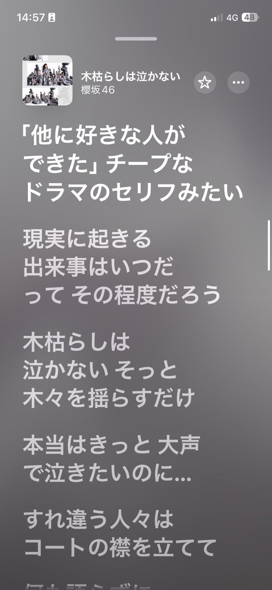 なんか、過去のこと思い出しちゃった。。 何度も聴いてる曲なのになぜか急にこの歌詞が俺の心にぶっ刺さった #木枯らしは泣かない #言われたことあるわ #前向いてこう #今は櫻坂46がいるから問題ない pic.x.com/ujQT281ZY4