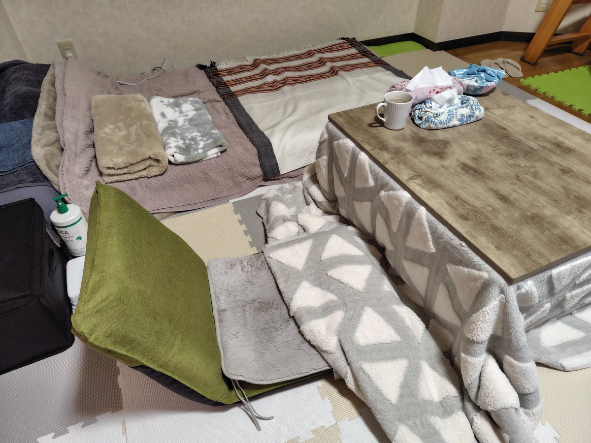 引越しの日に近畿地方で #木枯らし一号 が吹いた ということで もののついでで おこた仕様にしてみますた︎🌟 ラグも電源もまだだけどちょっとは 違うといいな( *´꒳`*) #くらげきらきら︎の伝道師︎🌟 pic.x.com/WYGPuFmyF8