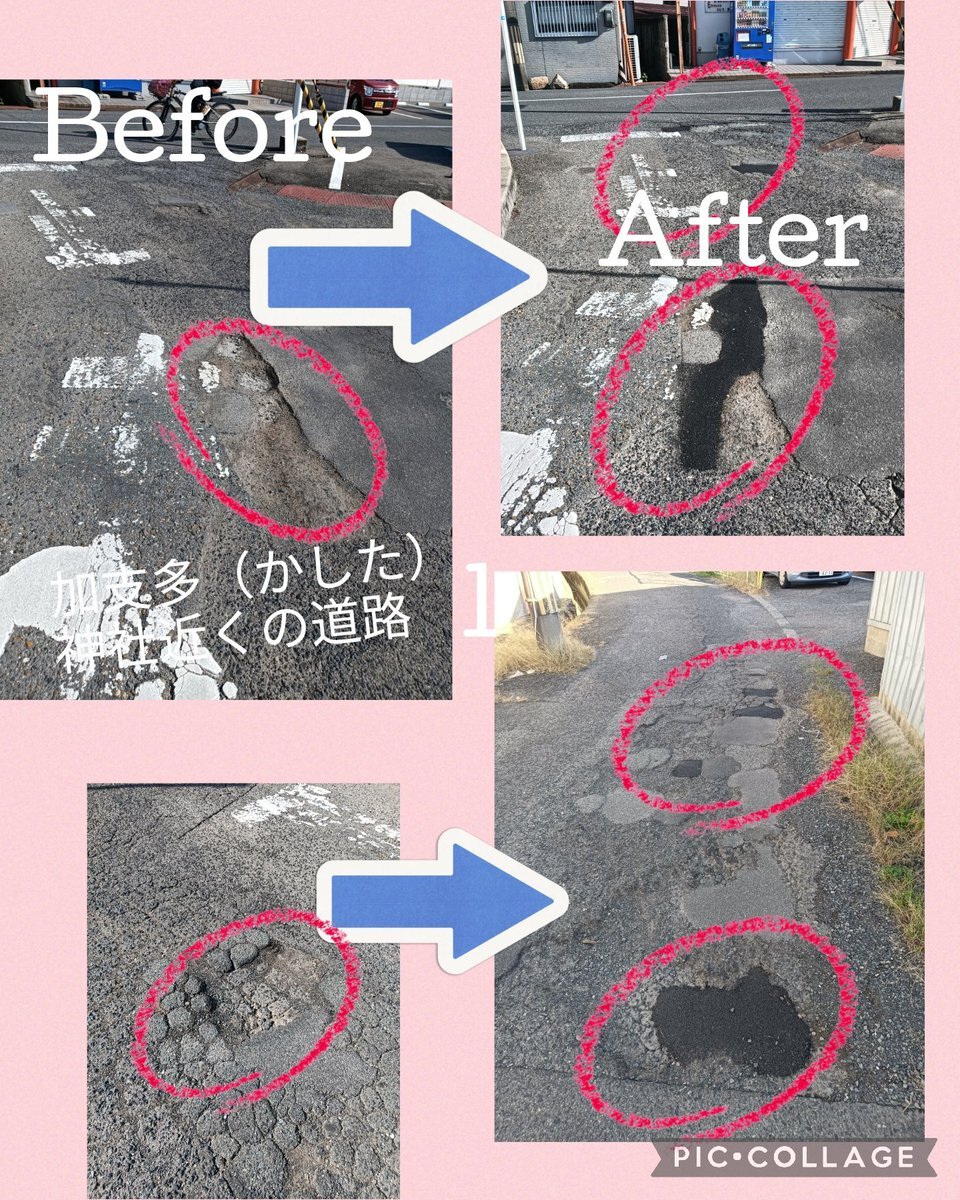 昨日は、東京、近畿に #木枯らし1号 が吹いたとの報道がありました。昨日に引き続き市民相談の報告です。#加支多(かした)神社近隣の道路が凸凹で高齢者にとって危なく何とかして欲しいとの相談でした。担当課に相談その日のうちに8箇所を対応して頂きました。有難うございました。#辻󠄀中隆 pic.x.com/yYbtFt3CkN