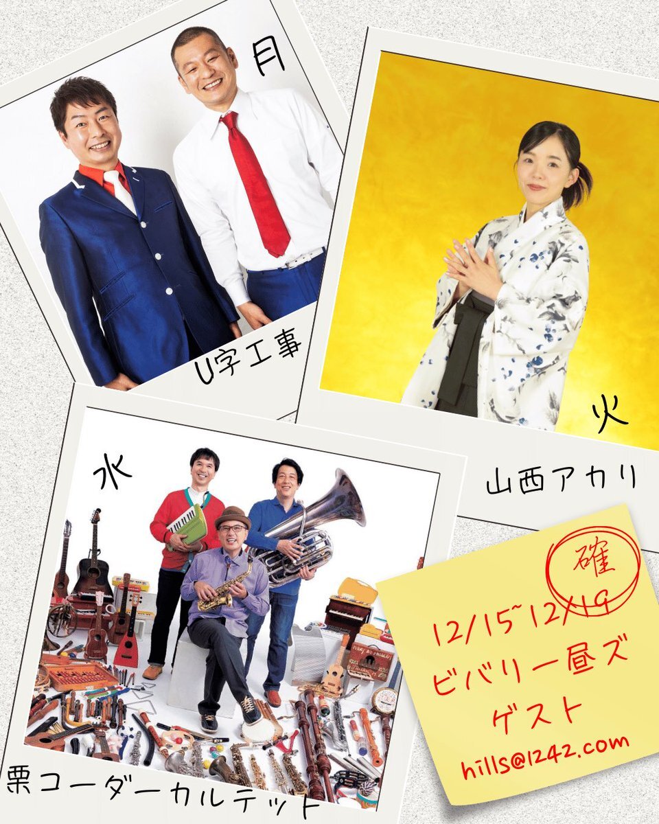 今週のラジオ #ビバリー昼ズ は… 15日(月)U字工事 16日(火)山西アカリさん 17日(水)栗コーダーカルテット 18日(木)清水さんの代打に磯山さん登場で 「お江戸リクエスト」 19日(金) 週刊IQクイズ メールの宛先は ✉️hills@1242.com