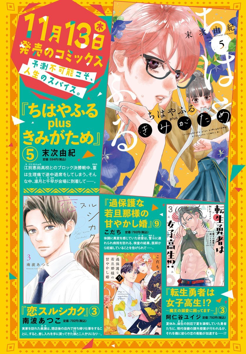 BE・LOVE11月刊KCが明日発売📚💗 ✦ #ちはやふる plus きみがため ⑤ #末次由紀 ✦ #恋スルシカク ③ #南波あつこ ▽こちらも注目 ⚔ #転生勇者は女子高生!? ~魔王の溺愛に困ってます~ ③ #阿仁谷ユイジ 🍂 #過保護な若旦那様の甘やかし婚 ⑨ #こだち 🤍 #弟の距離感がバグってます ⑤ #もすこ pic.x.com/zoff6YqyBo