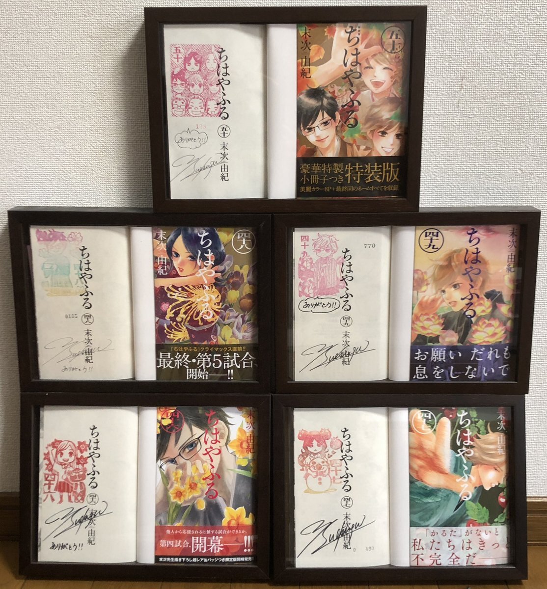 ちはやふる初サイン本!ずっと欲しかったからうれしい🍁 #伊右衛門巨大かるた自販機 のキャンペーンもご縁があるといいな〜 あわら市のサイン会がきっかけで、いろいろあったから、末次先生にお手紙も書いてみたいけど講談社BE・LOVE編集部に送ればいいのかな #ちはやふる基金 #末次由紀 pic.x.com/vrYHFPjGVO