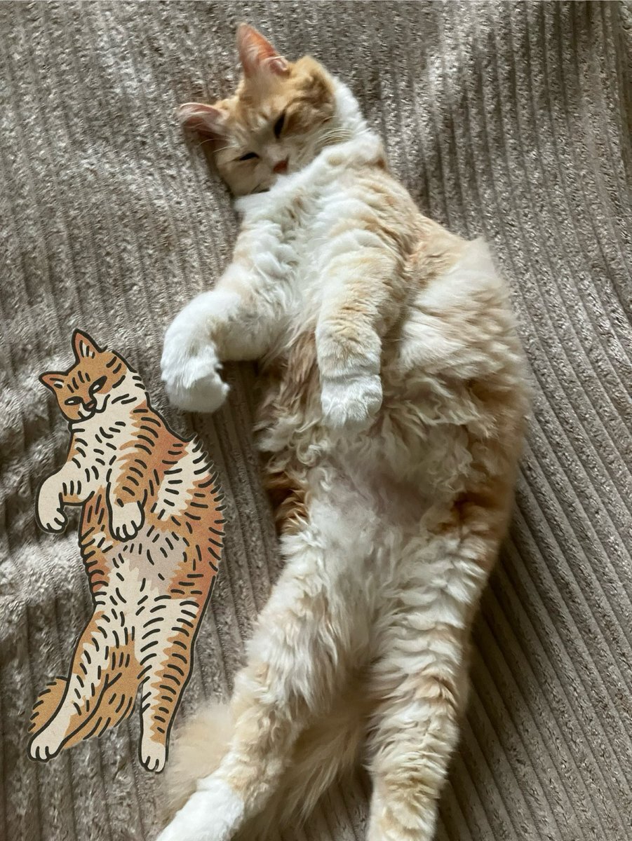 おはようございます✨ だいふくが寝ているところの写真で chatGPTにイラスト化をお願いしました🙇 条件は下手ウマなイラスト... 私は結構お気に入りです🤩 皆様にとって素敵な一日でありますように✨ #猫好きさんと繋がりたい #本と猫 #猫のイラスト pic.x.com/745u8gKMvt