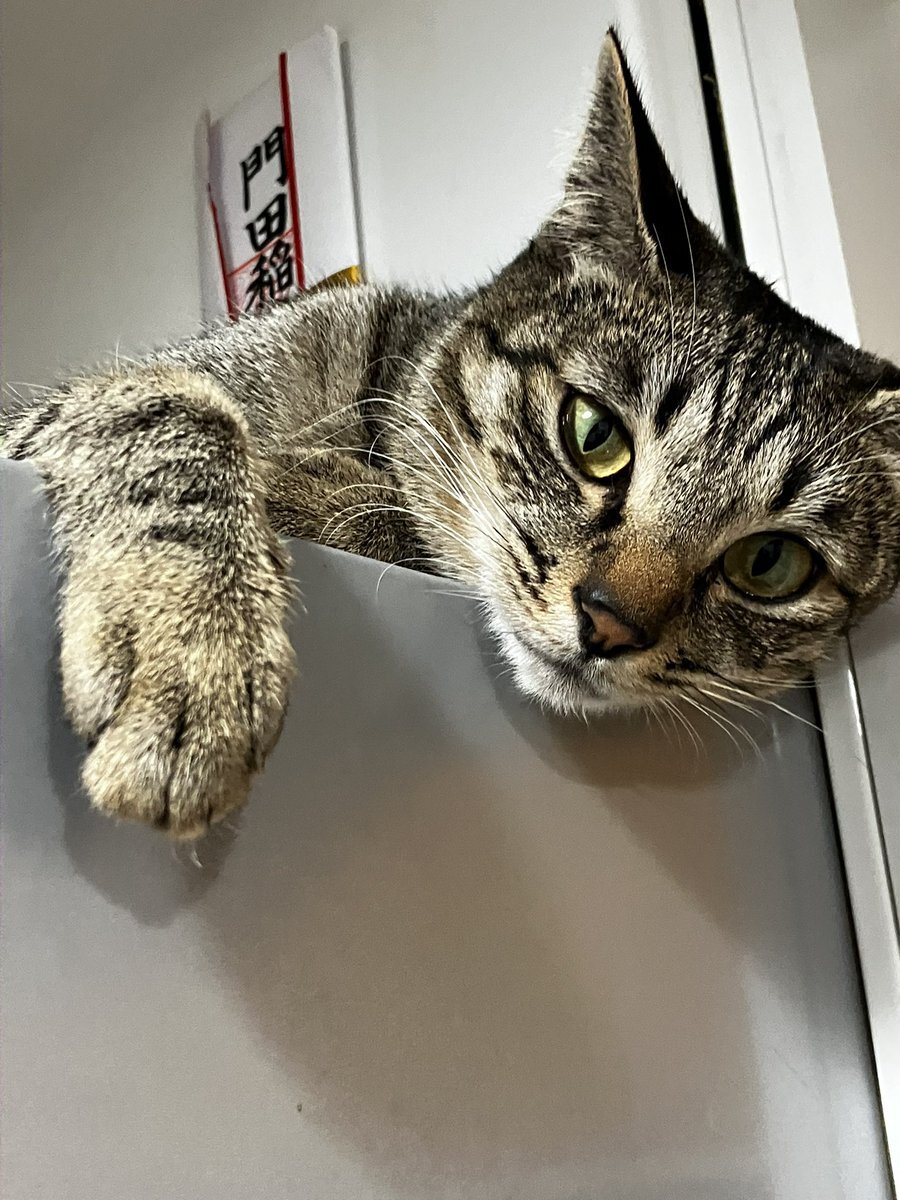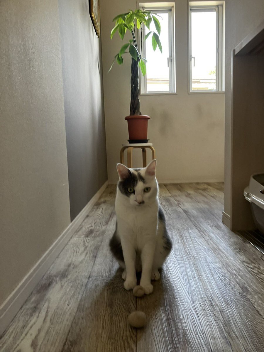 おつかれさまです✨ 我が家の前を通る人は 運が良いとこんな光景を見る事ができます👀  見た人が笑顔になるのをそっと見るのが 好きな私です😊 そしていよいよ「硝子の塔の殺人」もクライマックス‼︎ 名残惜しい🥺 #猫好きさんと繋がりたい #本と猫 #硝子の塔の殺人 pic.x.com/ASkxEwrx9o