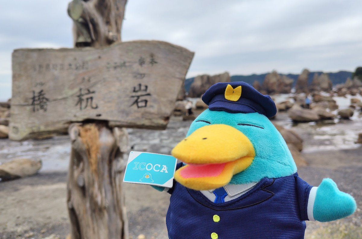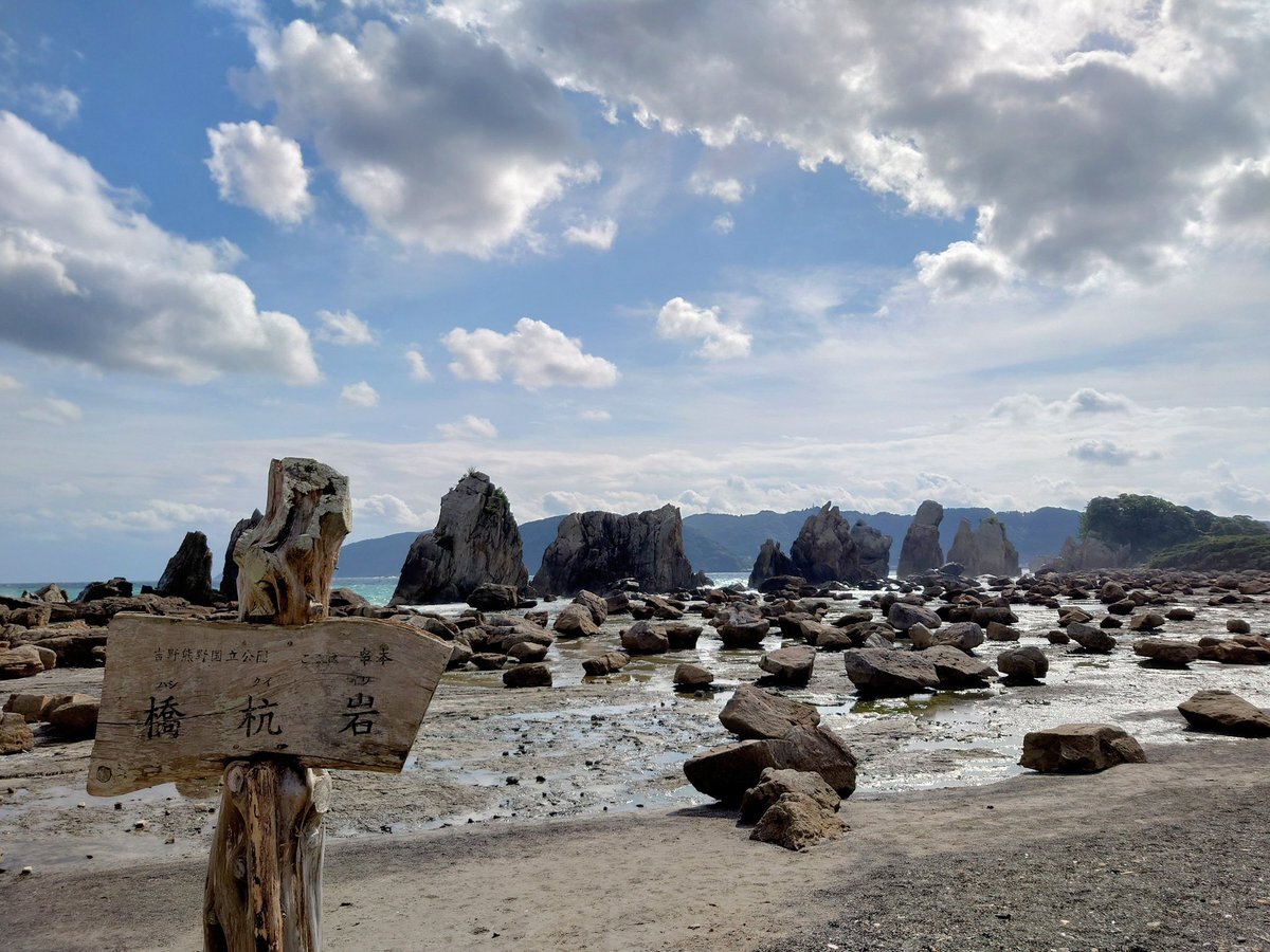 「特急くろしお」に乗って、本州最南端の串本町へ。 くしもと観光周遊バスに乗って、まず向かったのは橋杭岩。 自然が作り出す景観は見事です。 夜のライトアップ、見たかったな。 早速、万博で学んだことを実行。 欲しいものはその場で買う♪ #串本町 #橋杭岩 #イコちゃん #ミャクミャク #カワウソ x.com/kokochi_nozomu…