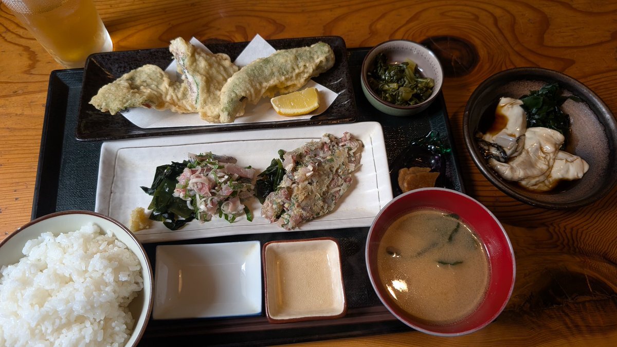 #本日の飯テロ活動 #本日のうまタッチャン #四季の料理はなぶさ #はなぶさ #千葉県八街市 #うまタッチャン #うまともちゃん #うま竹 タッチャンSP 10番極上イワシ定食 内容→(二品選ぶので タタキとなめろう) 梅シソ天ぷら に 生カキポン酢 🙋骨は唐揚げにしてくれます 大竹先輩と ランチ♪ pic.x.com/WEL9vobsqU