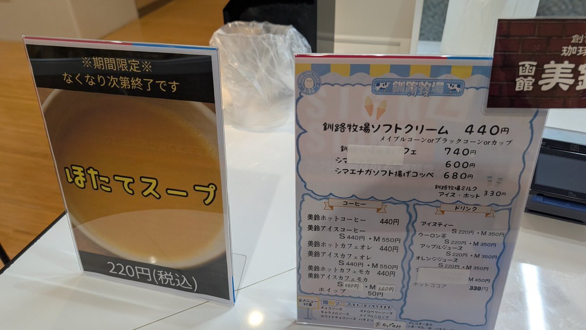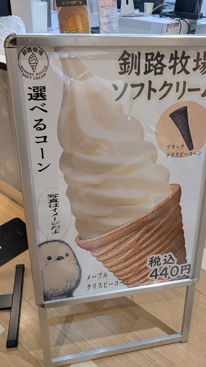 #本日の飯テロ活動 #本日のうま竹チャレンジ #釧路牧場 #イオンタウン成田富里 #千葉県成田市 #成田市を応援し隊盛り上げ隊 #うまタッチャン #うまともちゃん #うま竹 釧路牧場ソフトクリーム (ブラックコーン) 440円 ホタテスープ 220円 オープン記念 シマエナガシールもらいました😃 pic.x.com/xYw9kduLkj