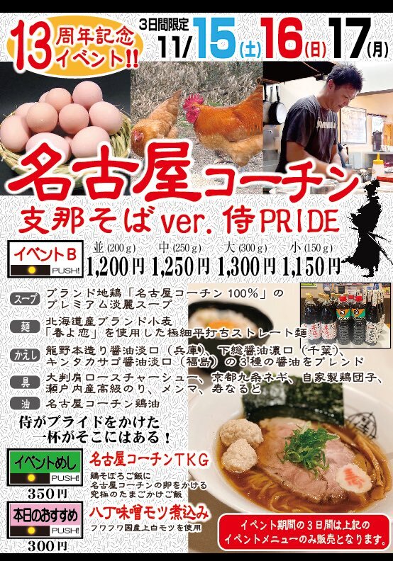 #本日の飯テロ活動 #本日のうま竹チャレンジ #麺屋侍 #千葉県千葉市緑区おゆみ野南 #13周年おめでとうございます #うまタッチャン #うまともちゃん #うま竹 名古屋コーチン 支那そばver.侍PRIDE並 名古屋コーチンTKG 八丁味噌モツ煮込み めでたい日には  めでたいフルセット pic.x.com/AtOgi6EI3K