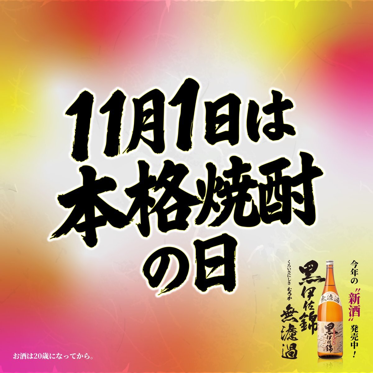 / 11月1日は本格焼酎&泡盛の日 🥃 \ 本格焼酎&泡盛の日は、新酒がちょうど飲み頃を迎える季節に、その魅力を楽しんでもらおうと制定された記念日です📅 年に一度の焼酎の記念日✨ 今夜はもちろん #くろいさ で乾杯!😉🎉 #本格焼酎・泡盛の日 #黒伊佐錦 pic.x.com/NlVVnMox6H