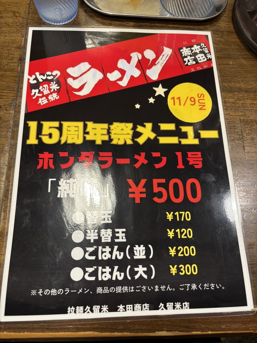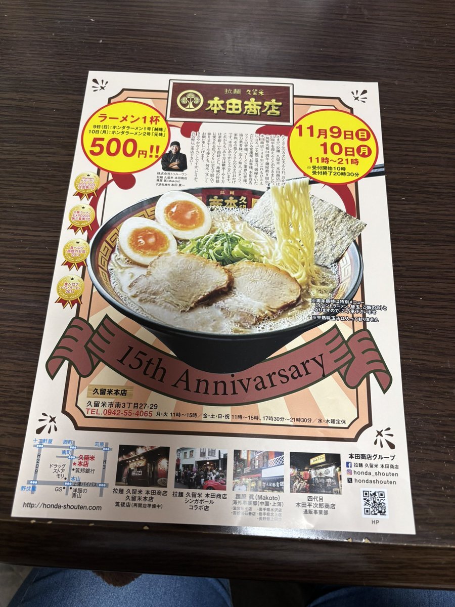 拉麺 久留米 本田商店「15周年感謝祭」11/9、10開催!ラーメン1杯500円!! #久留米 #拉麺久留米本田商店 #本田商店 #本田商店周年祭 #ラーメン #とんこつラーメン #福岡県 #久留米市 #イベント 詳しくは下記画像をタップ↓ kurumefan.com/honda-shouten-…